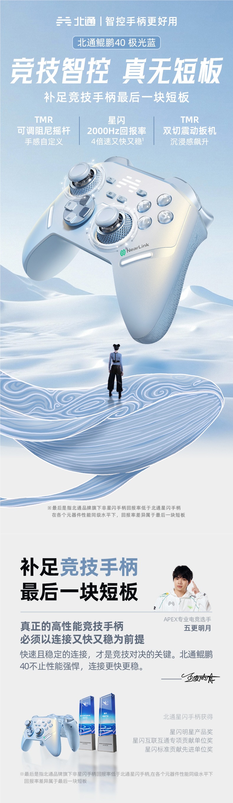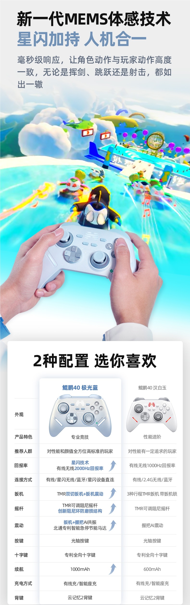 【鲲鹏40极光蓝(星闪款)】+【无线底座+手柄包】
