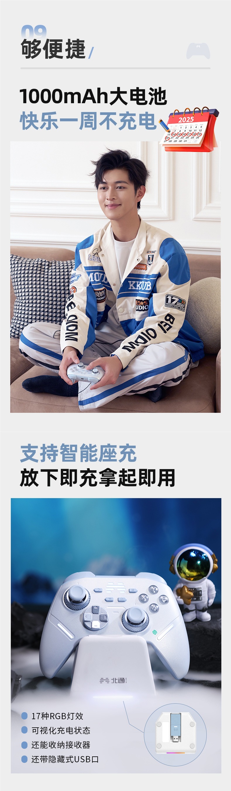 北通鲲鹏40极光蓝星闪手柄智能游戏pc电脑版适配switch2无线蓝牙n