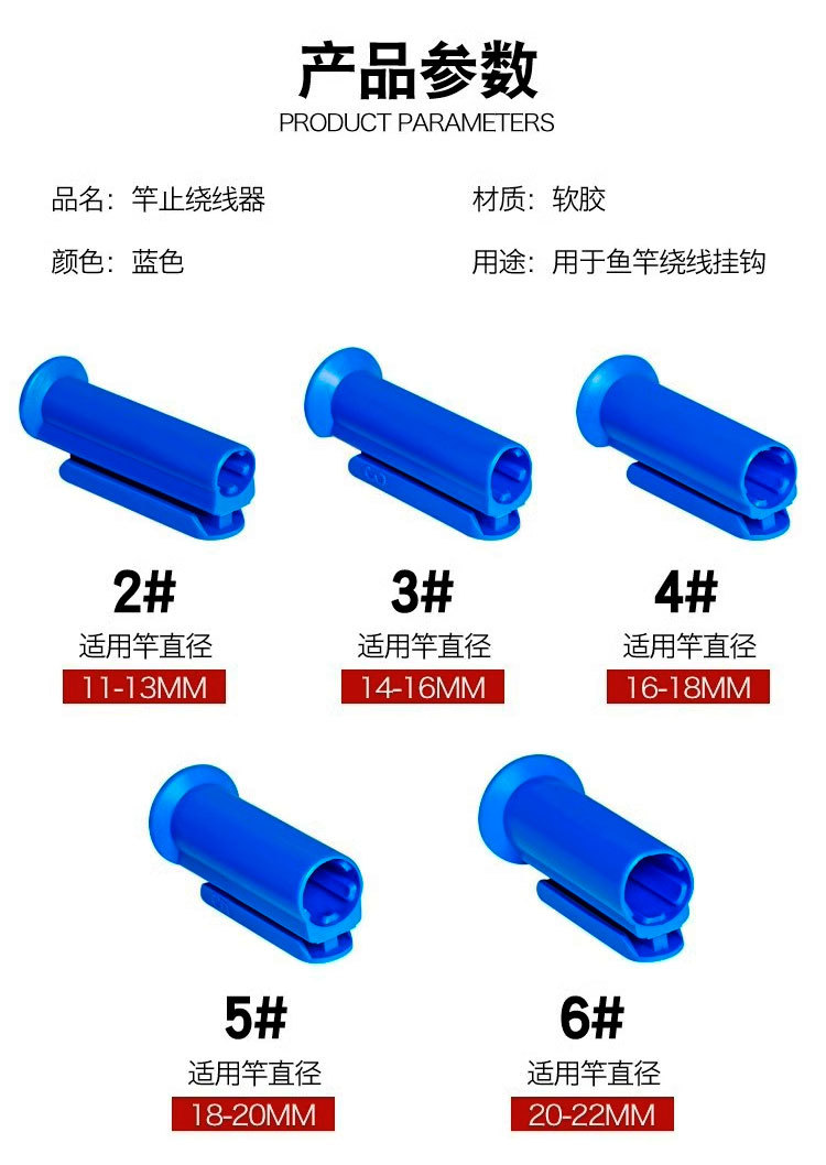 - 鱼竿竿止收线器【蓝/2-6号】5支装