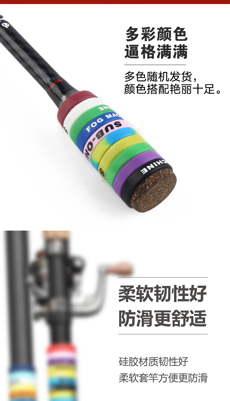 夜光鱼杆钓竿防滑圈弹弓把手柄硅胶橡胶环O型圈钓鱼竿止逼格圈彩