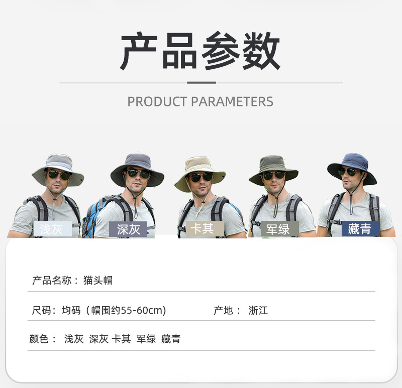 渔夫帽子男士户外防紫外线防晒帽登山钓鱼太阳帽骑行防嗮帽遮阳帽