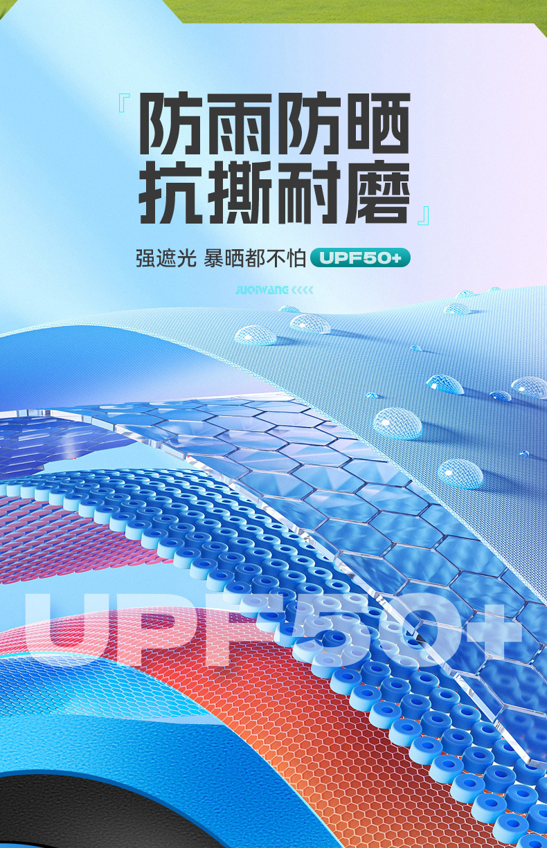 - 【整杆不锈钢零透光防暴雨抗大风】牛津布黑胶-2.6米天青
