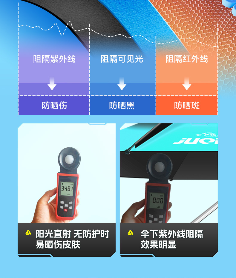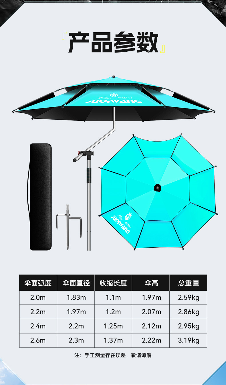 - 【双360调节加硬不锈钢零透光防暴雨】牛津布黑胶2.4米蓝黑