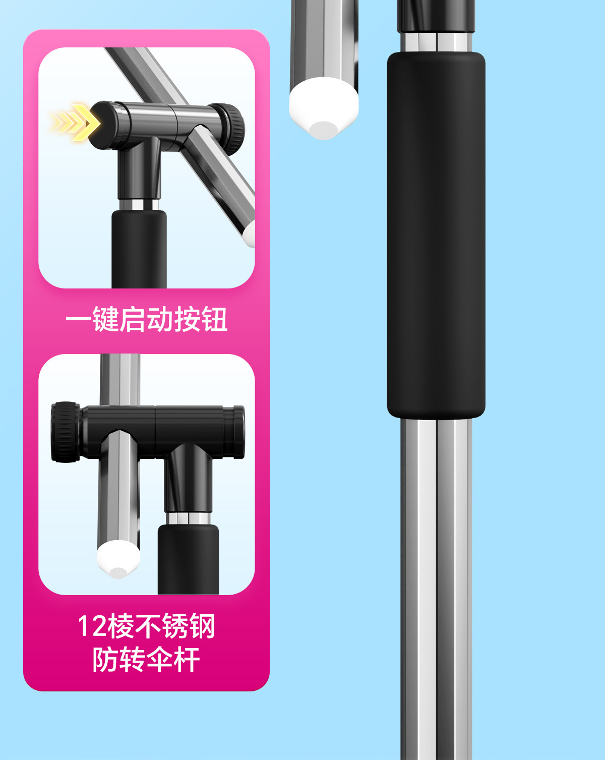 2.2米双拐钓伞【360调节,12棱不锈钢防转伞杆】
