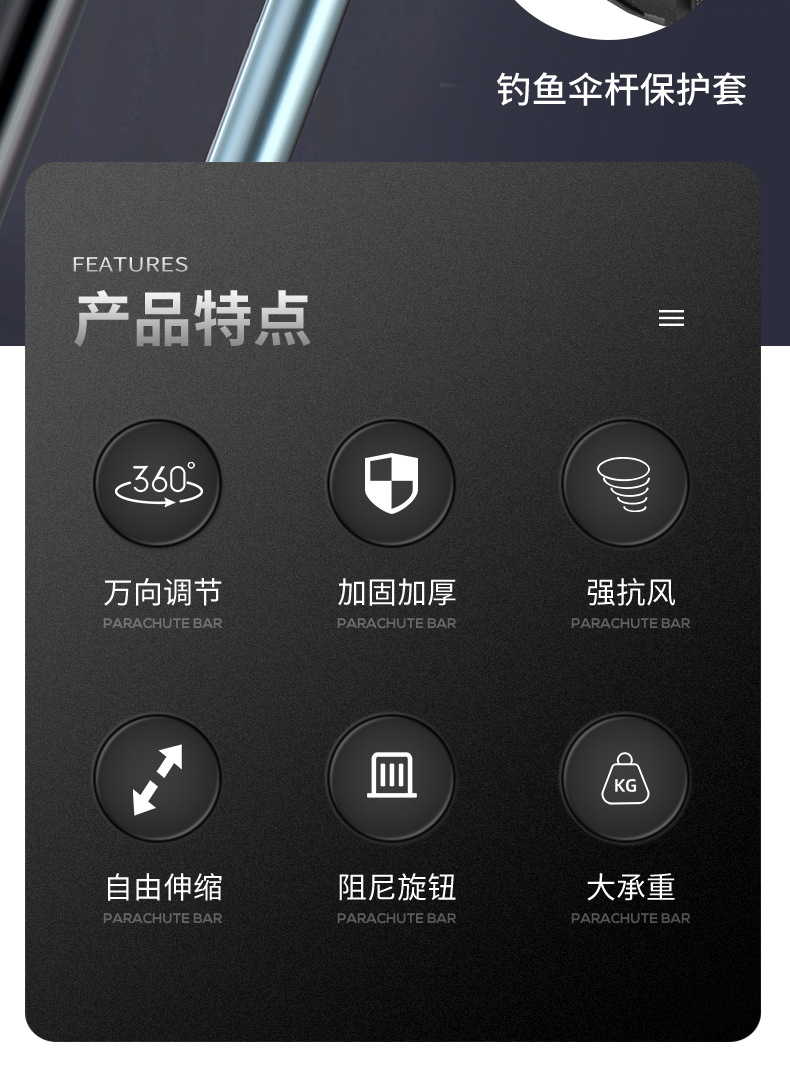钓伞下杆钓伞万向拐杖钓伞连接器手杖伞下杆钓鱼伞配件加厚钓伞架