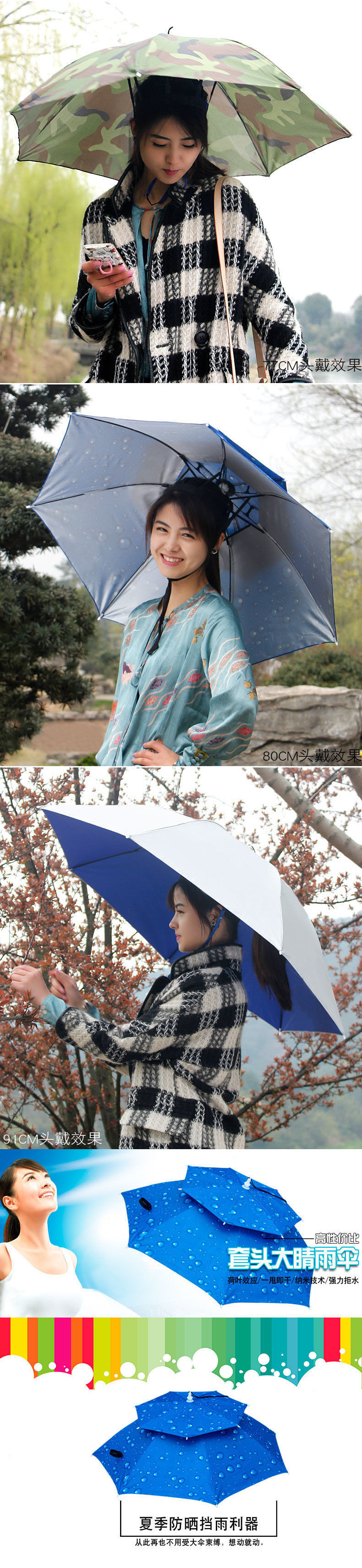 伞帽头戴雨伞帽子钓鱼头戴太阳伞户外采茶环卫防晒斗笠伞折叠大号
