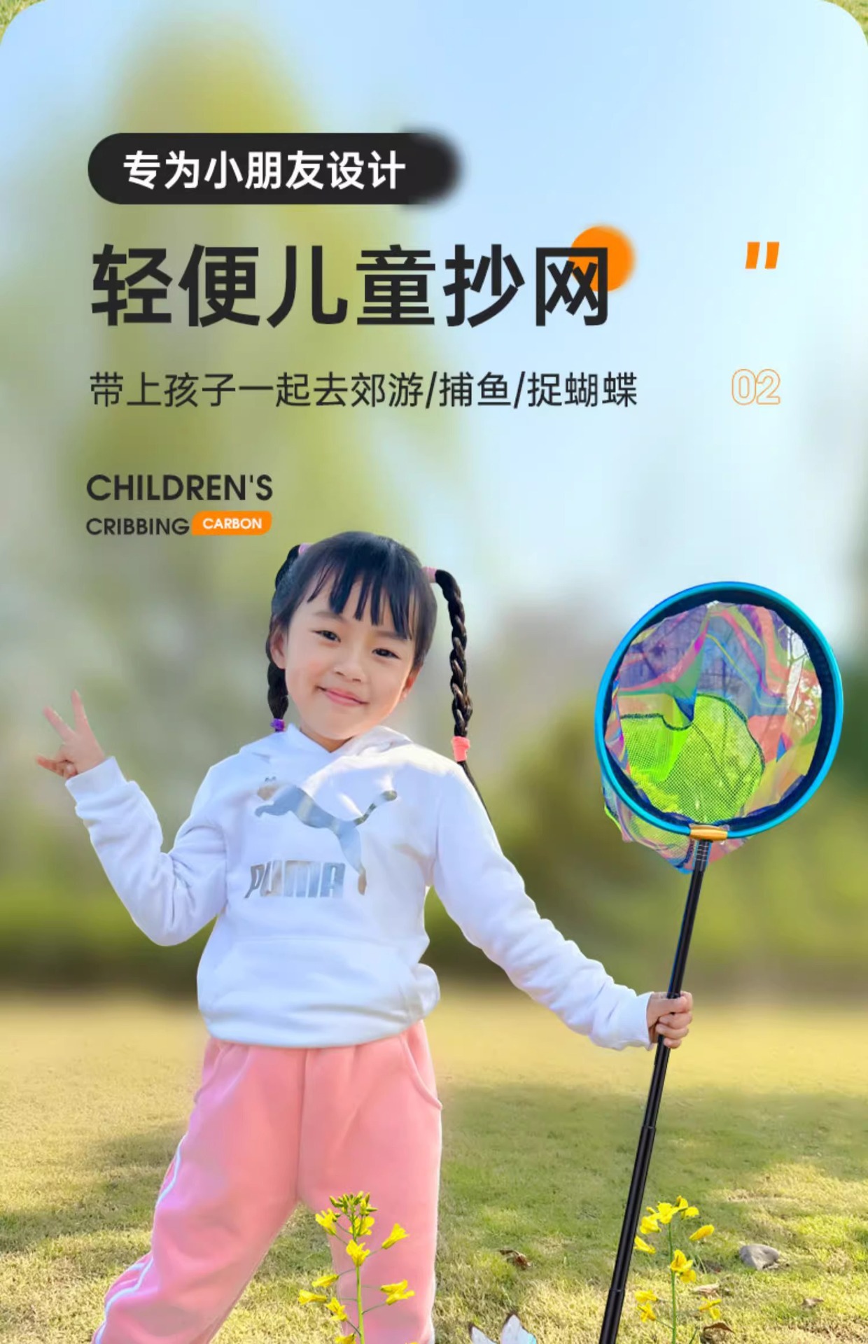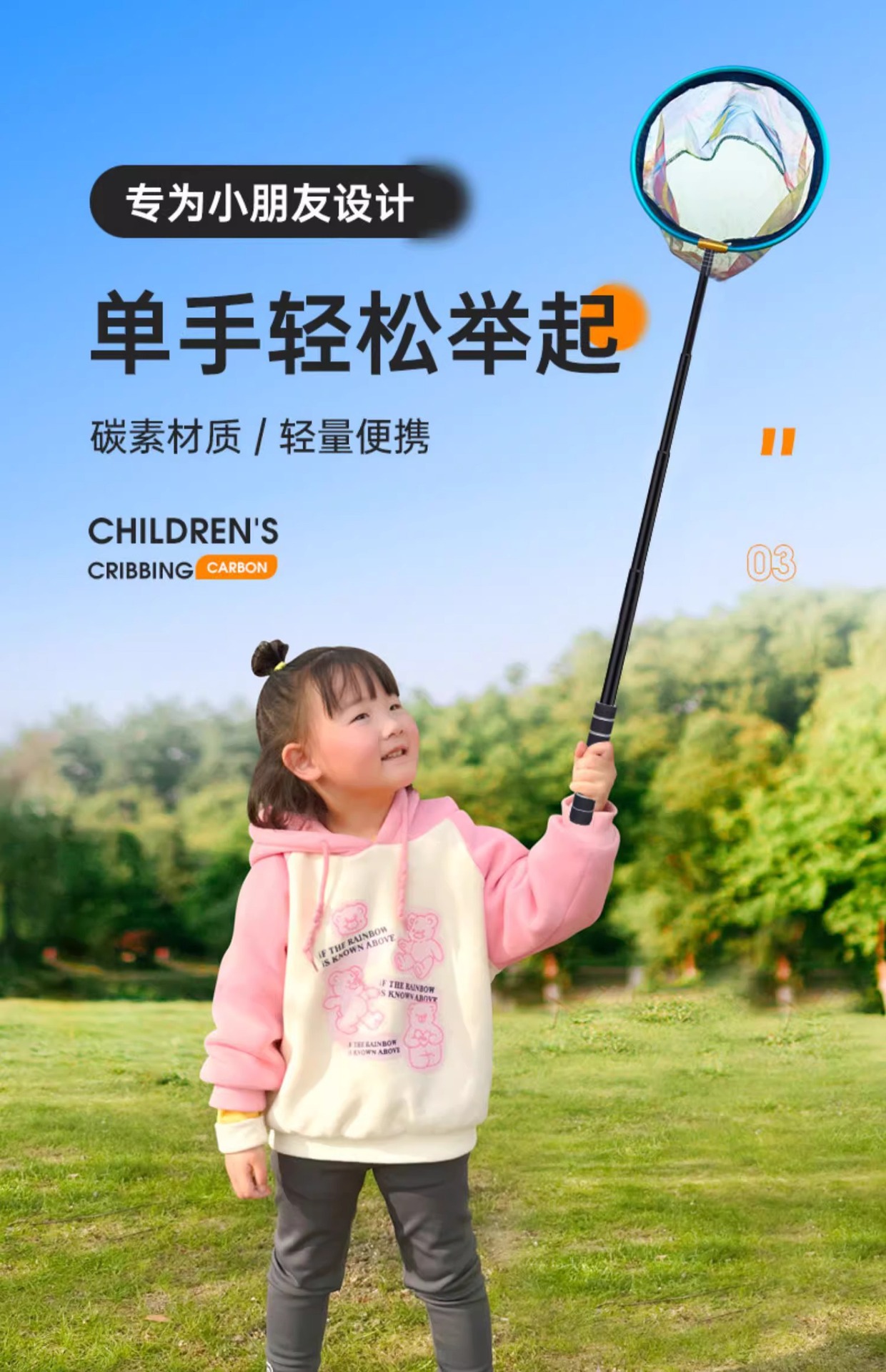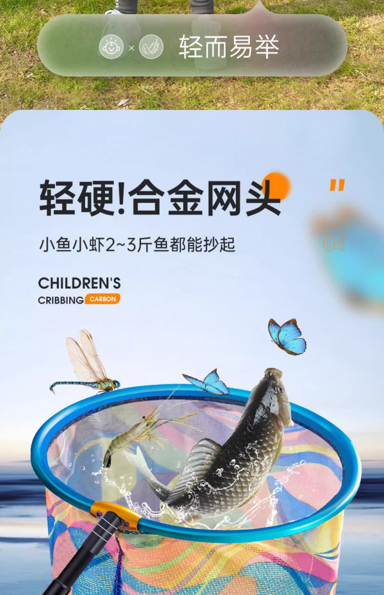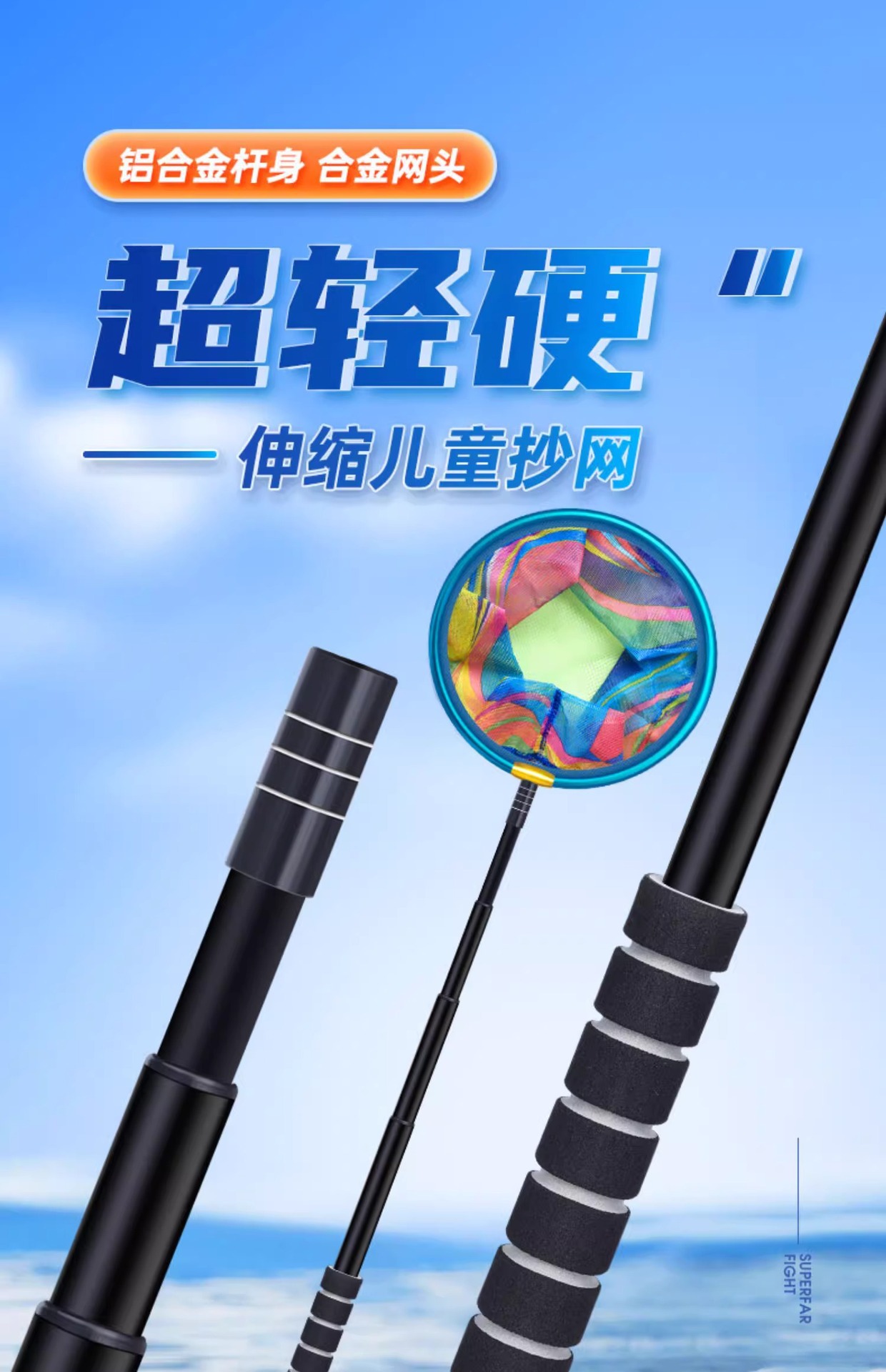 新款儿童抄网碳素网竿加厚伸缩网兜不锈钢捕小鱼虾蝴蝶捕虫网玩具