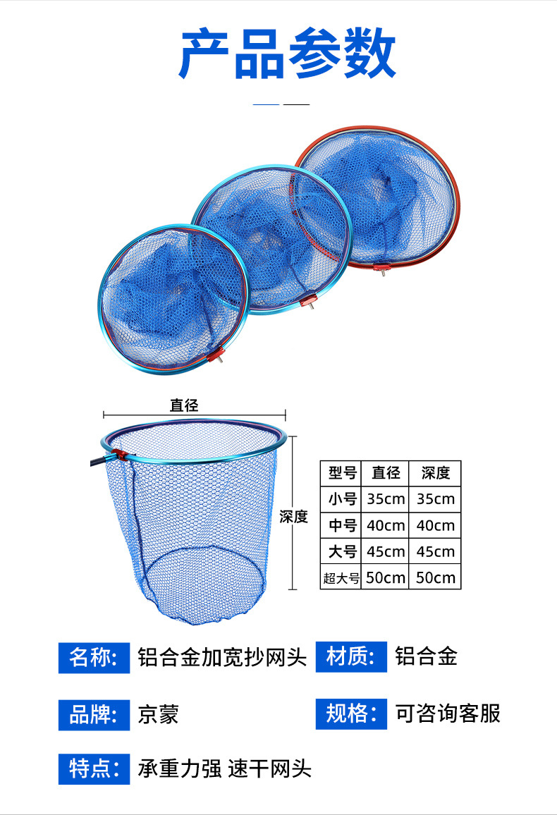 铝合金抄网头圆形抄网渔具配件大物网头捞鱼网加宽抄网头