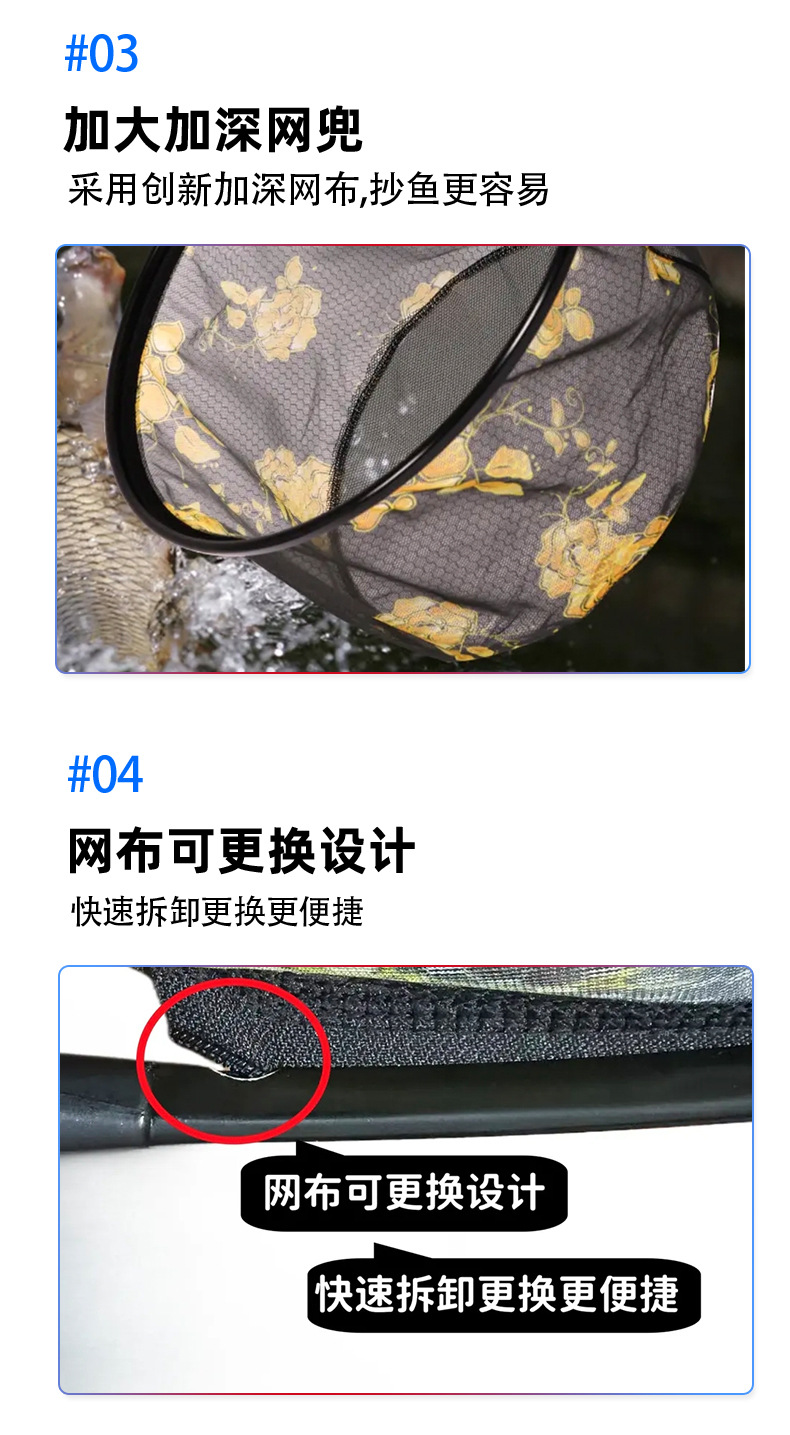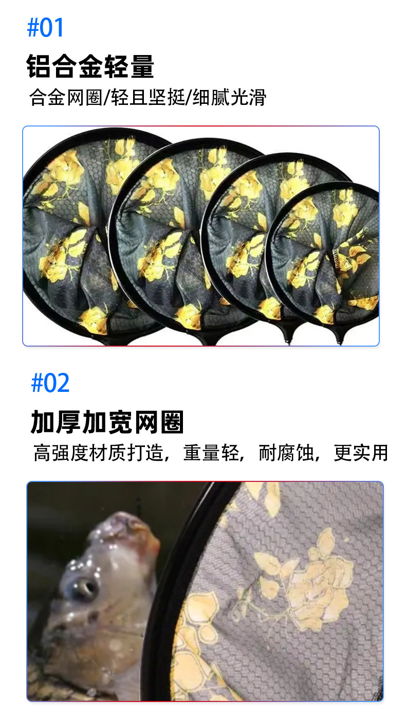 黑金抄网头网兜细眼防挂超轻大物竞技钓鱼抄鱼网垂钓抄网渔具