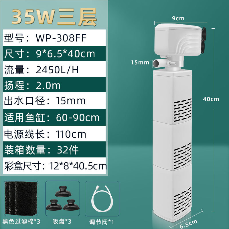 新秀鱼缸过滤器三合一过滤泵循环系统小型静音氧气泵内置增氧吸便