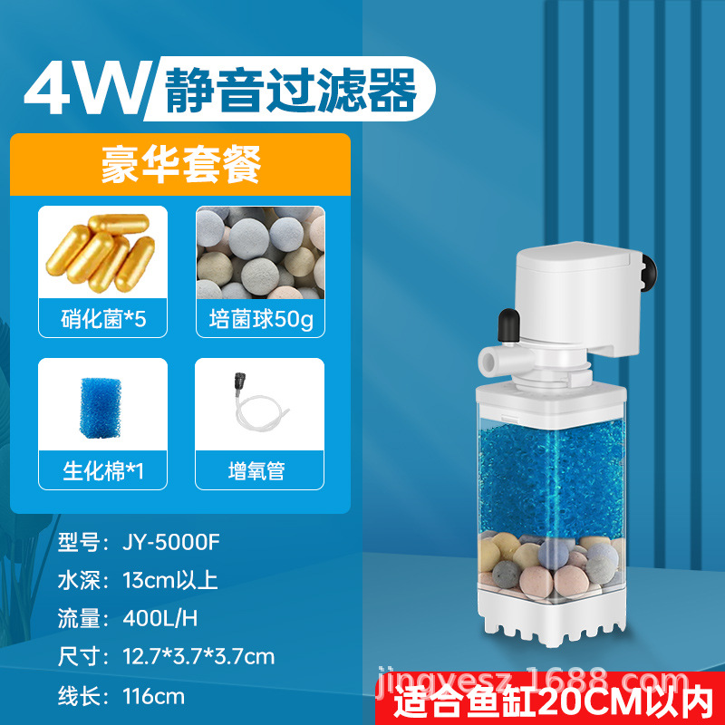 京业鱼缸过滤器三合一静音增氧泵水族箱循环泵吸便内置水泵净水器