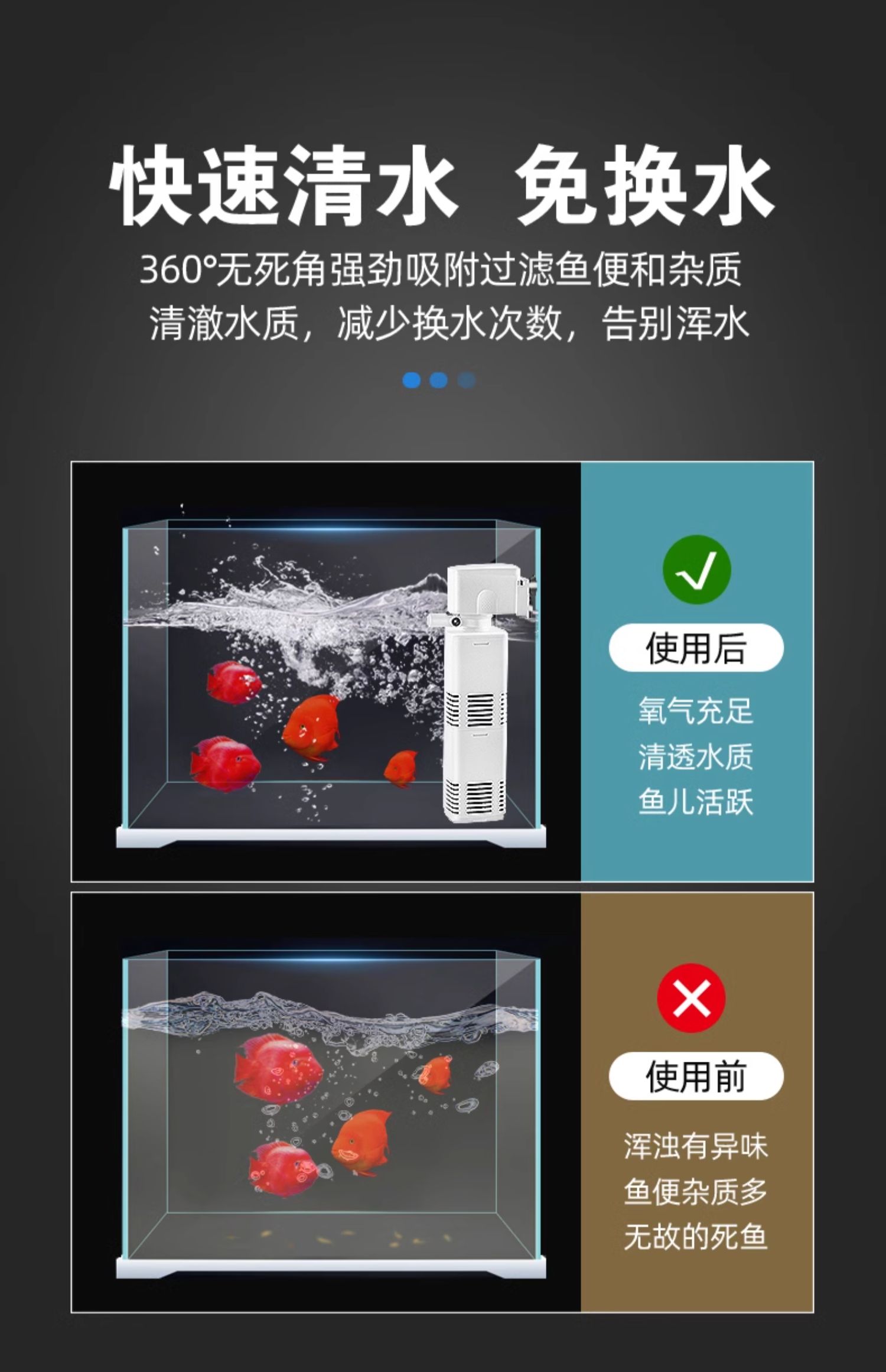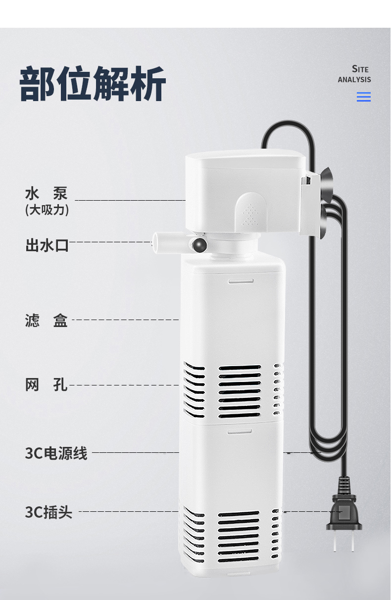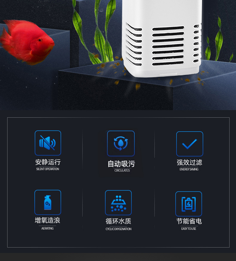 鱼缸过滤器过滤循环水泵制氧一体机净水三合一氧气泵小型超静音小