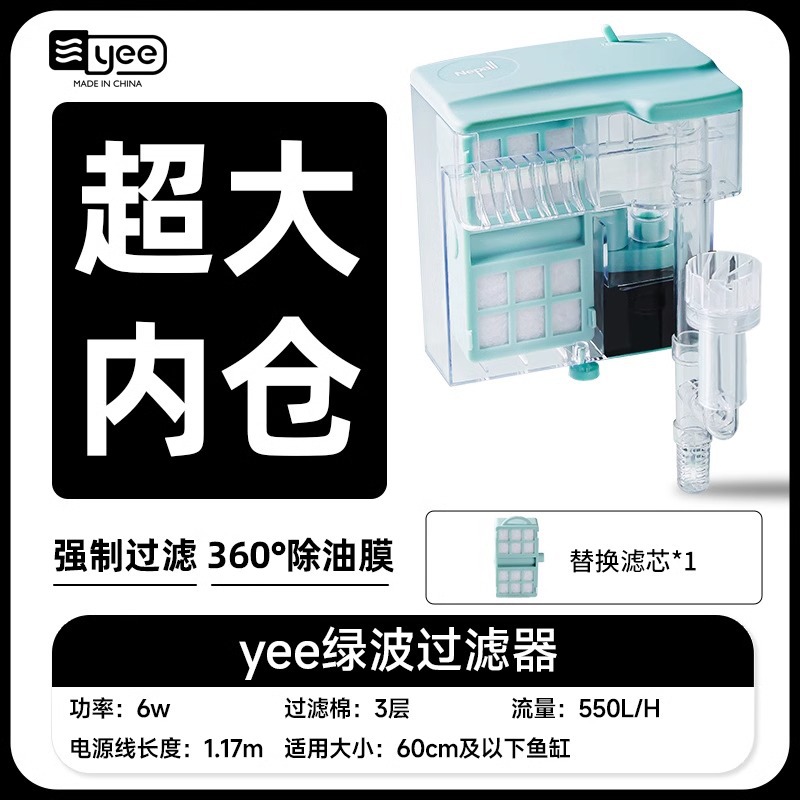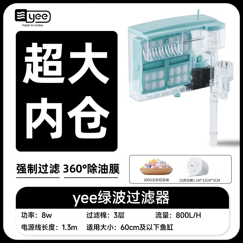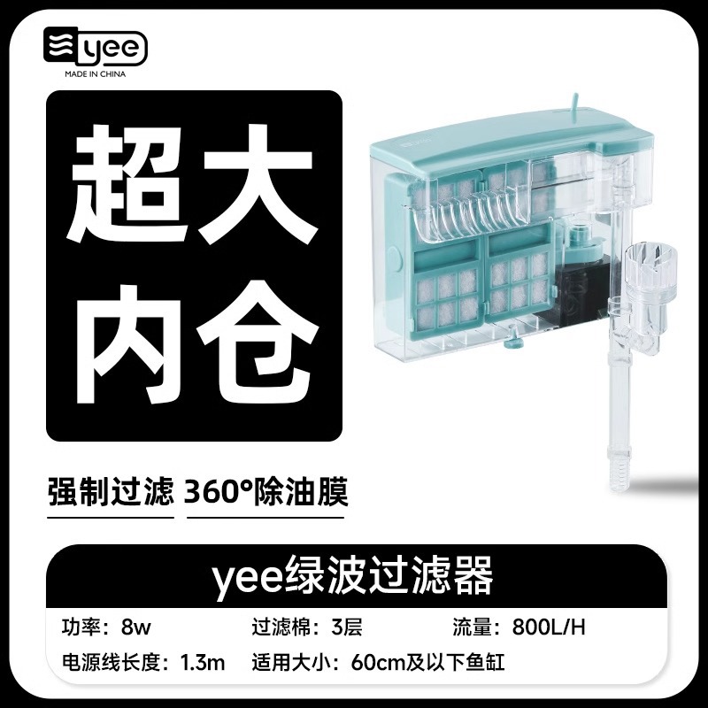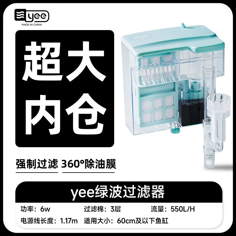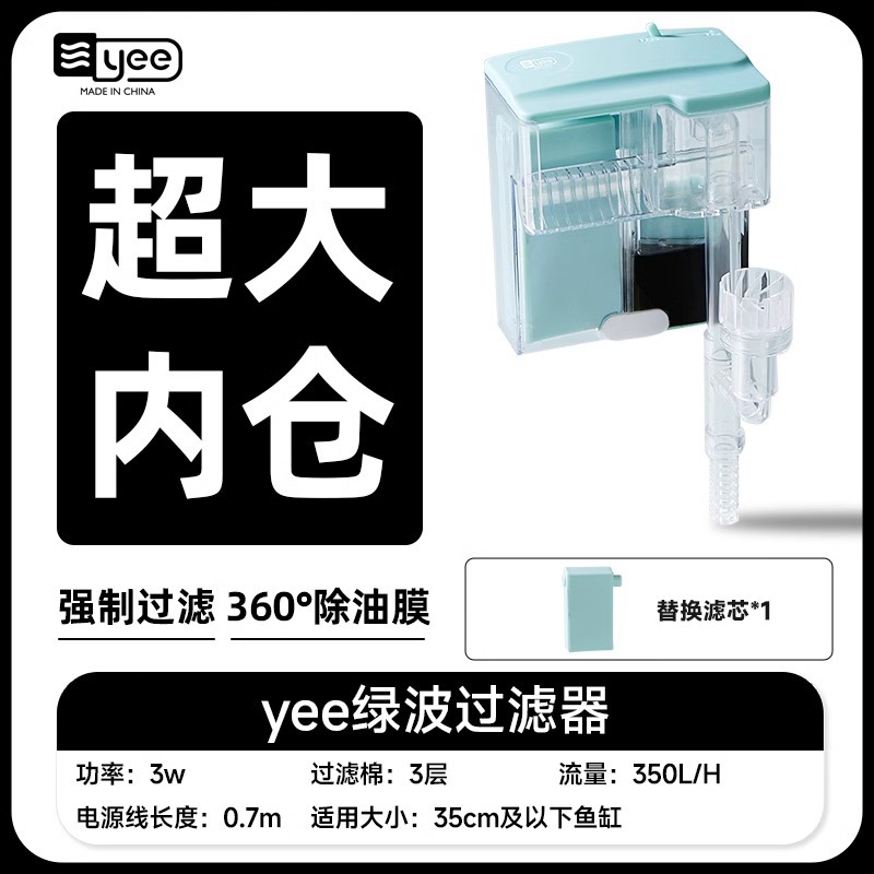 Yee小鱼缸过滤器循环水泵外置瀑布净水壁挂滴流盒过滤制氧一体