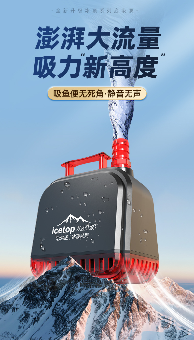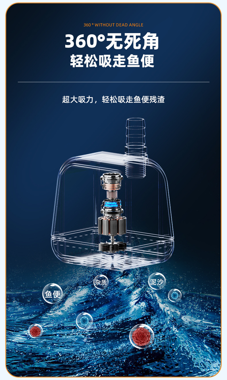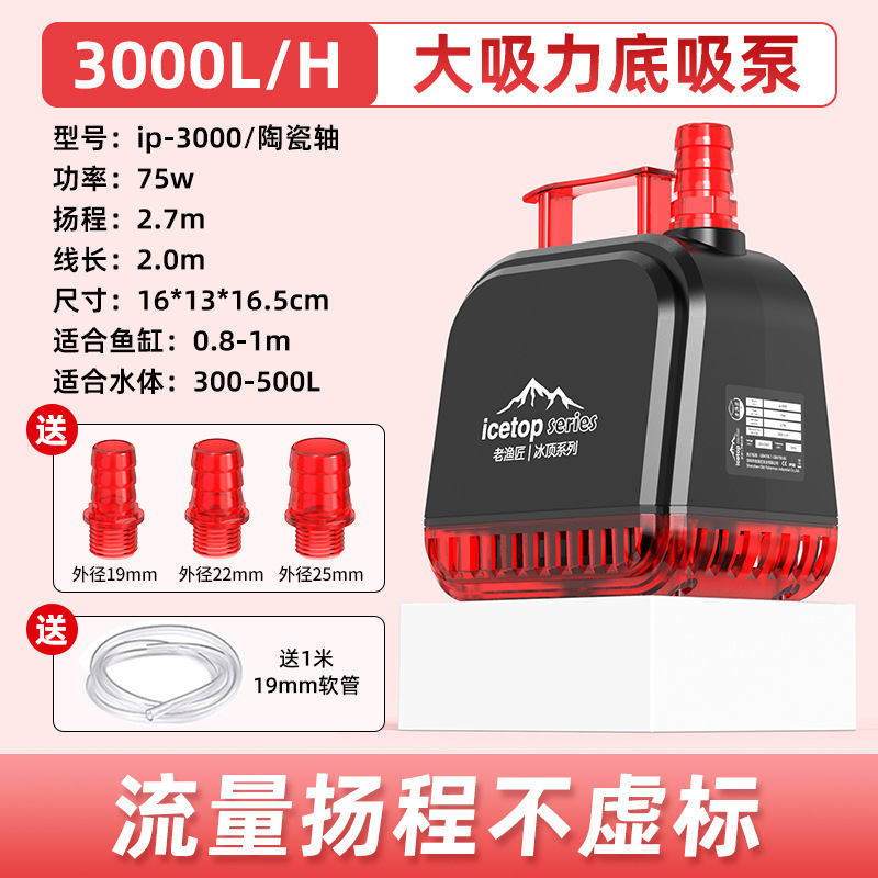 老渔匠鱼缸潜水泵超静音循环底吸泵抽水泵过滤器小型鱼池换水泵