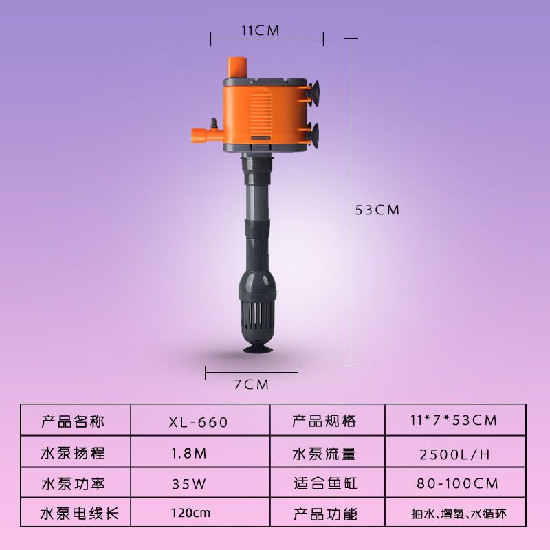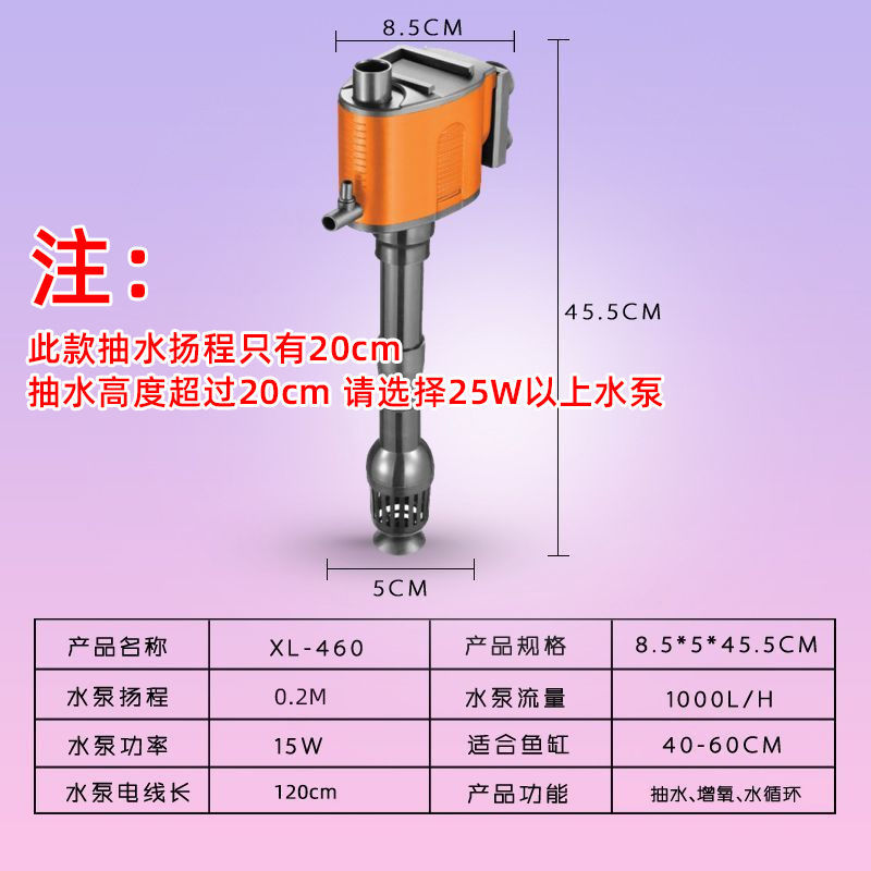 鱼缸超静音潜水泵水族箱三合一上滤抽水循环泵增氧泵过滤器
