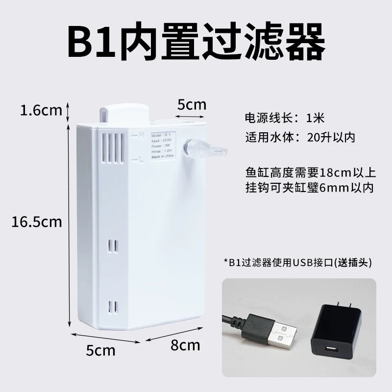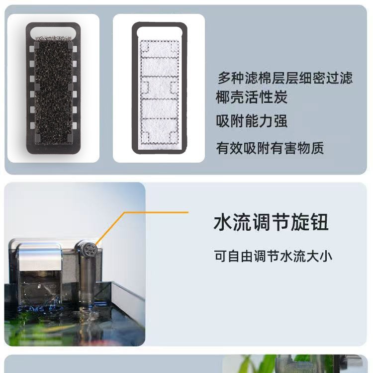 小鱼缸过滤器净水循环三合一水泵制氧小型瀑布式静音外置壁挂式