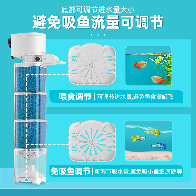 内置鱼缸过滤器静音增氧泵三合一潜水泵乌龟缸水族箱过滤设备