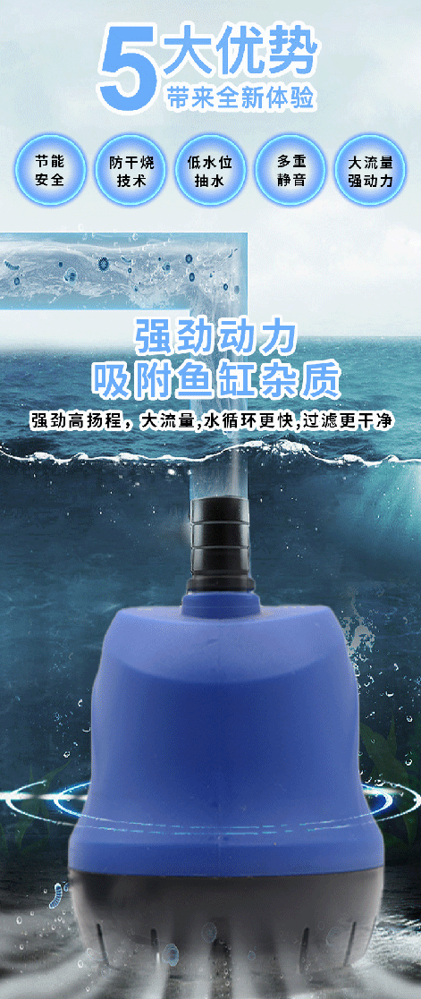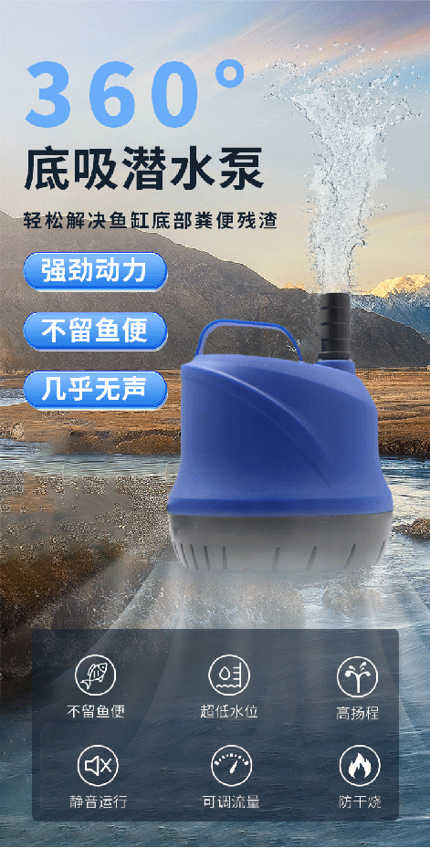 迷你底吸泵过滤器鱼池大型鱼缸换水泵可调节潜水泵静音循环泵低吸