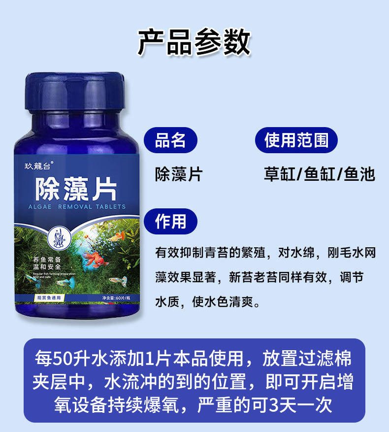 玖龙台鱼缸除藻剂去苔剂青苔黑毛水藻清除藻片水质净化剂硝化细菌