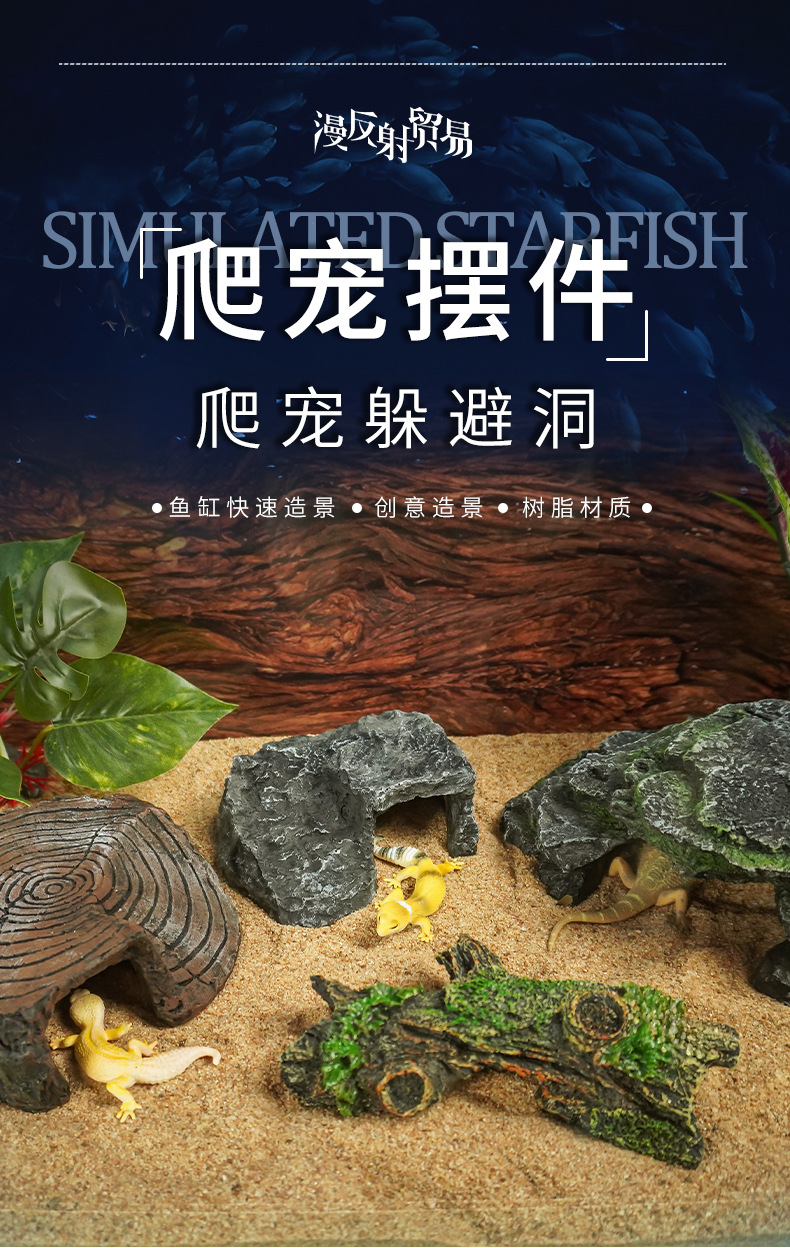 景观造景晒龟台树脂装饰爬宠躲避穴躲避洞爬台晒背布景鱼缸水族