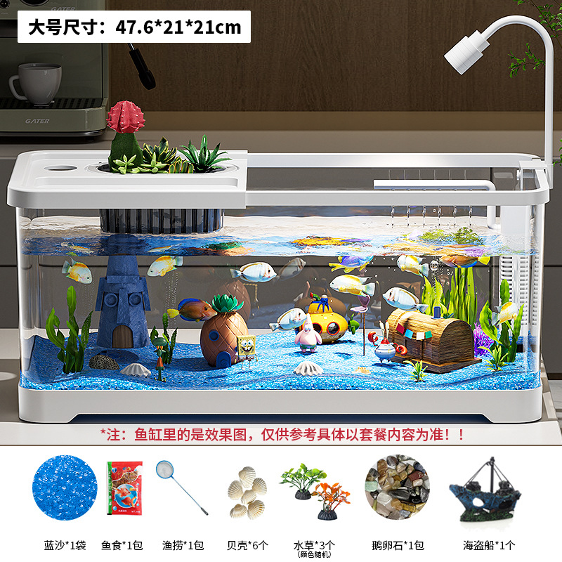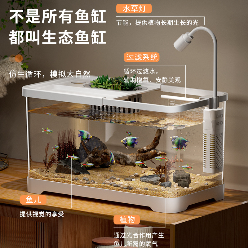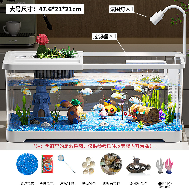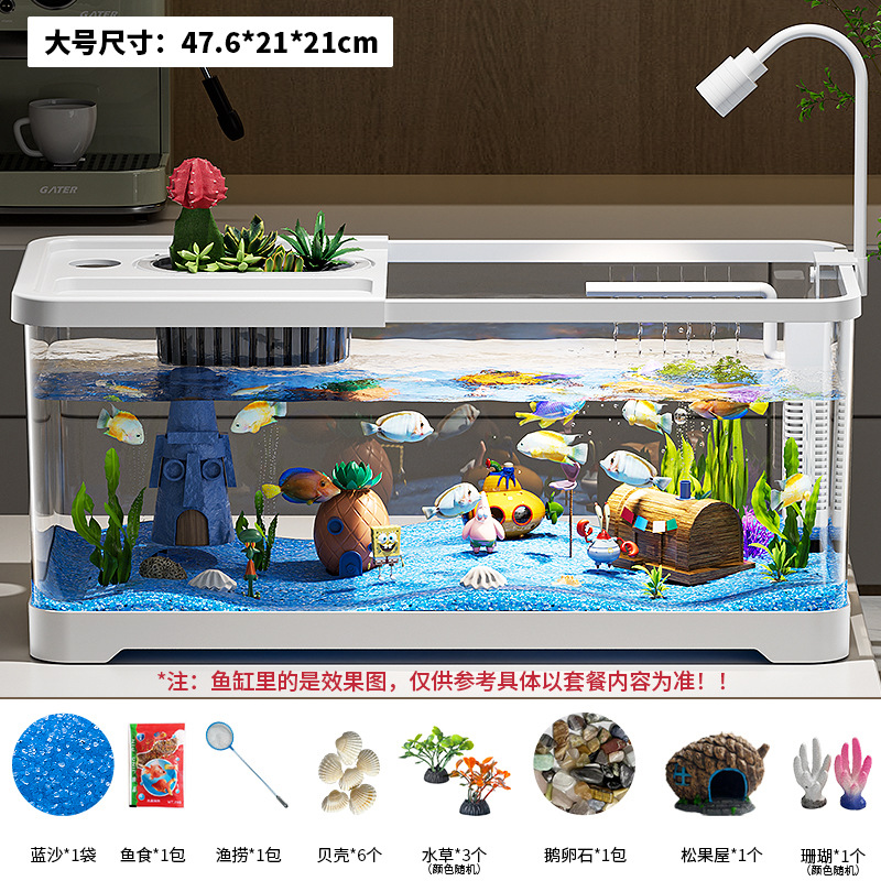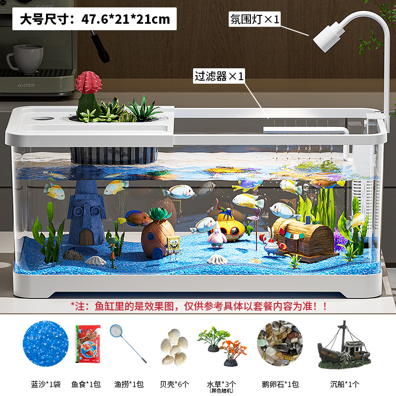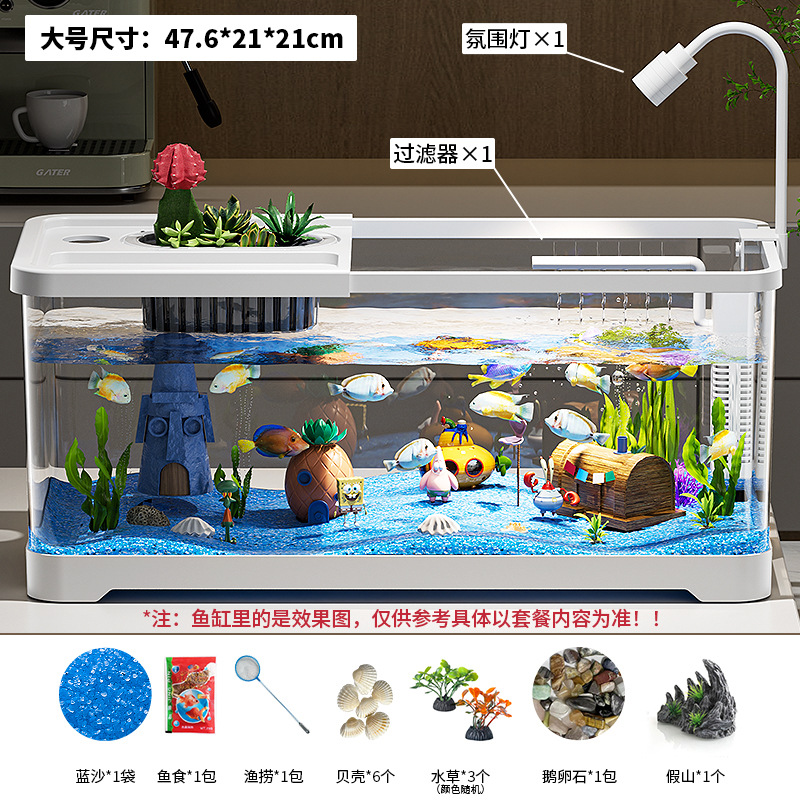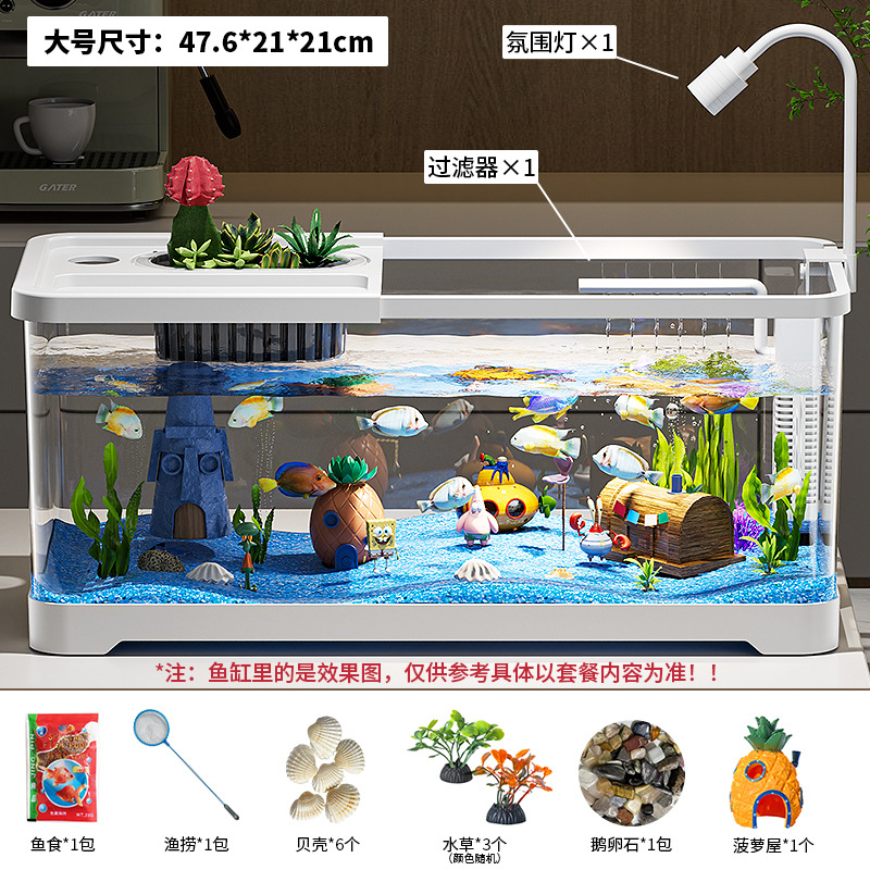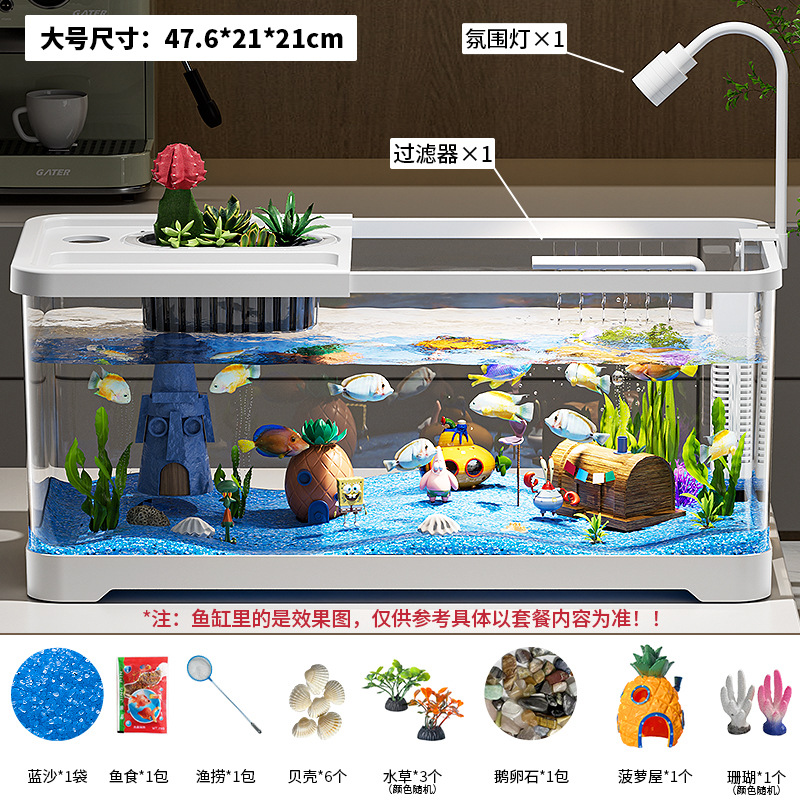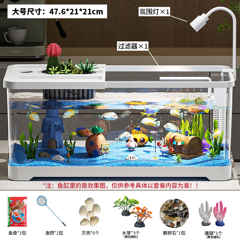 鱼缸带过滤制氧一体卡通生态造景小型客厅家用亚克力桌面观赏鱼缸