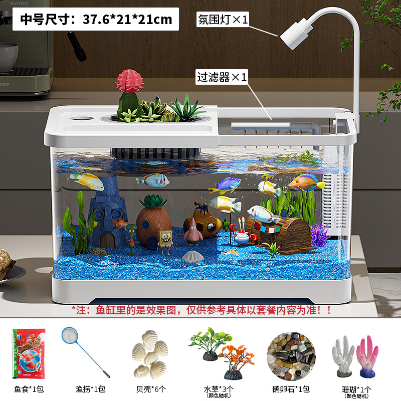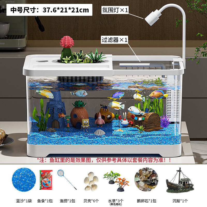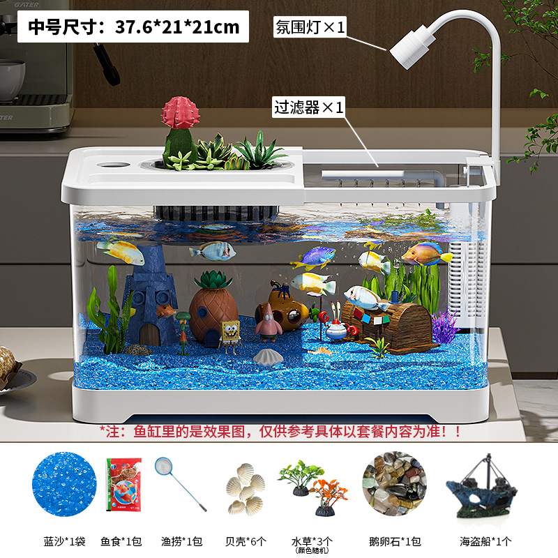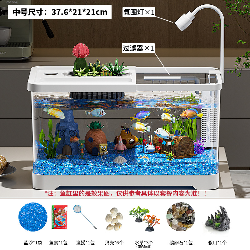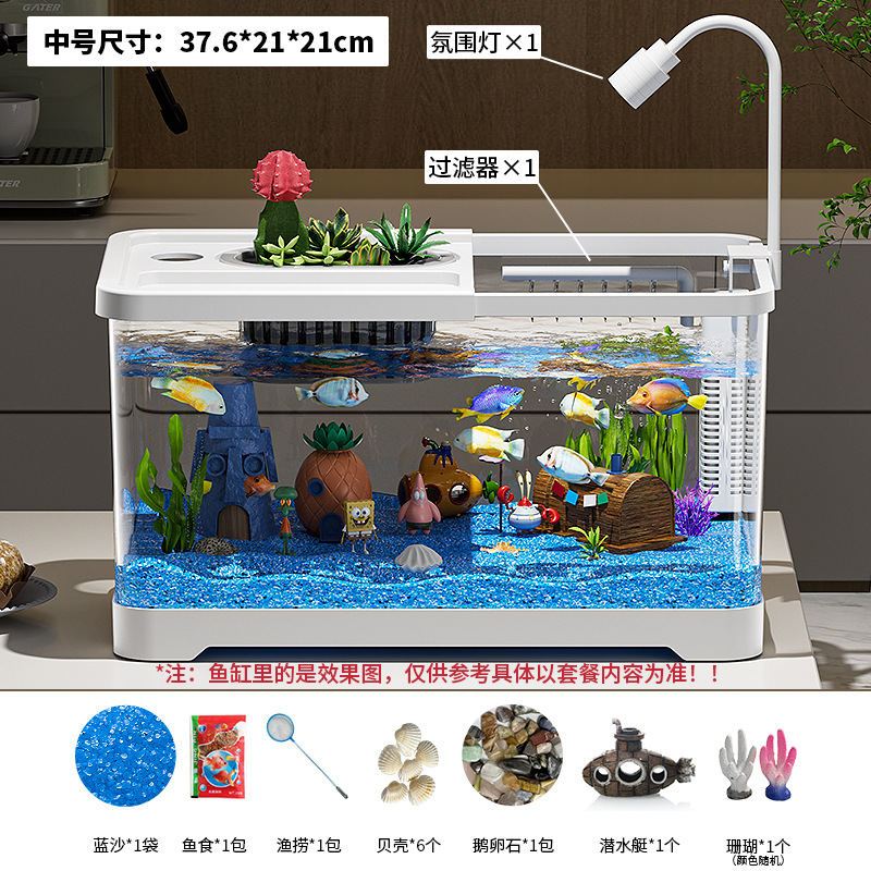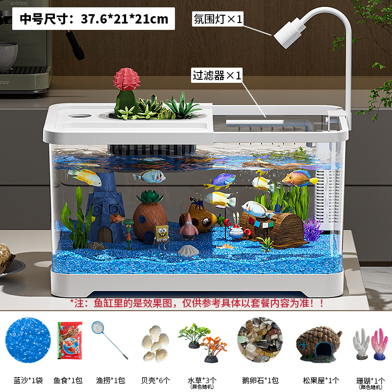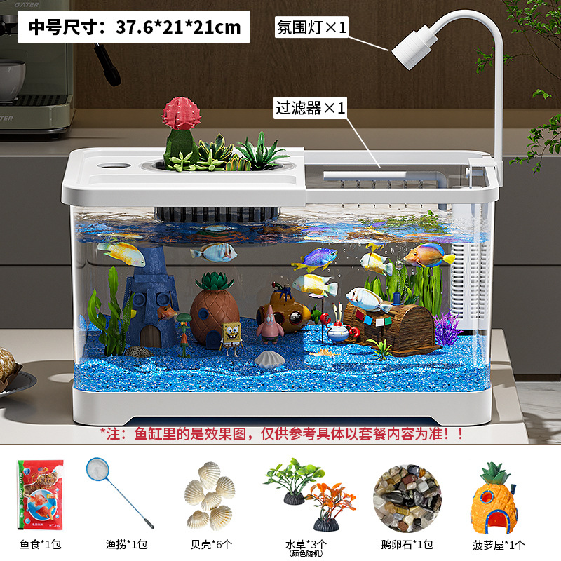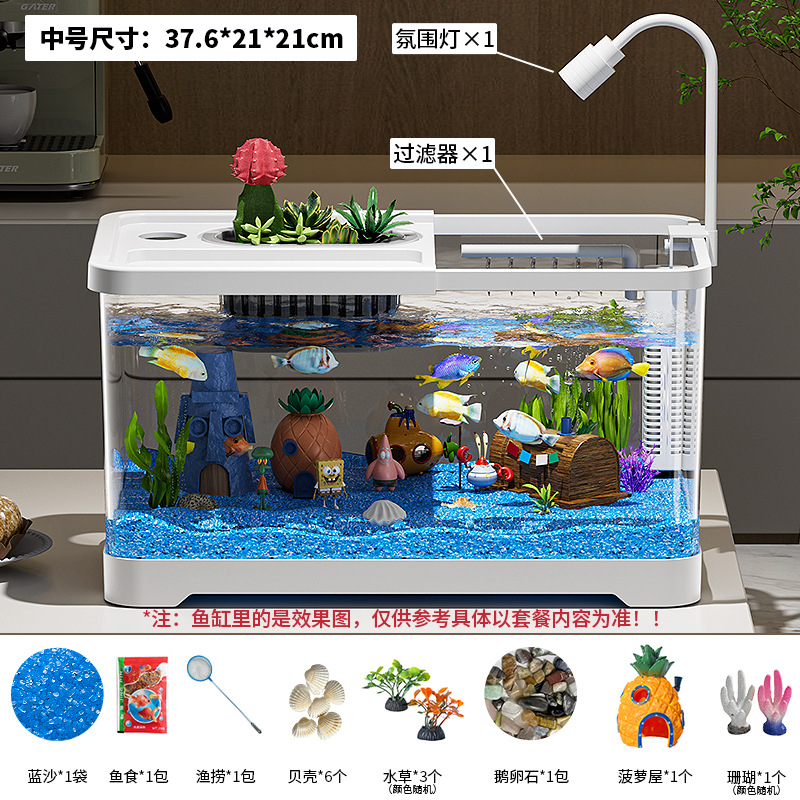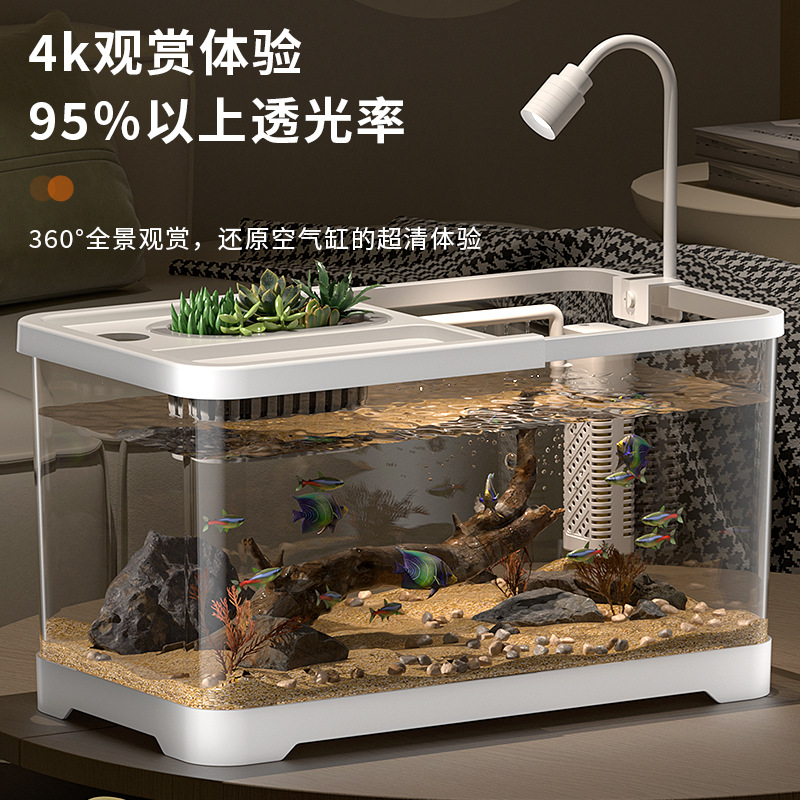 鱼缸带过滤制氧一体卡通生态造景小型客厅家用亚克力桌面观赏鱼缸