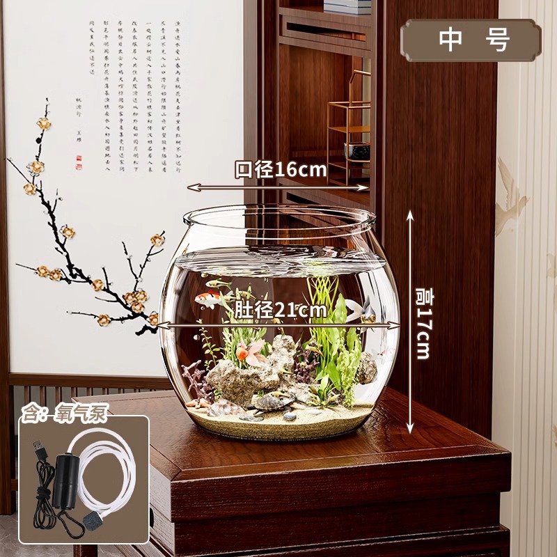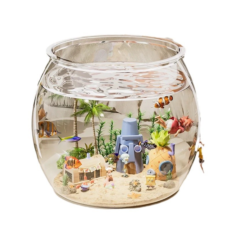 透明塑料仿玻璃圆形防摔小鱼缸一体成型客厅小型观赏桌面迷你鱼缸