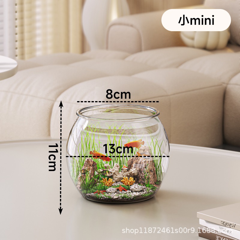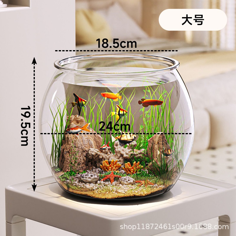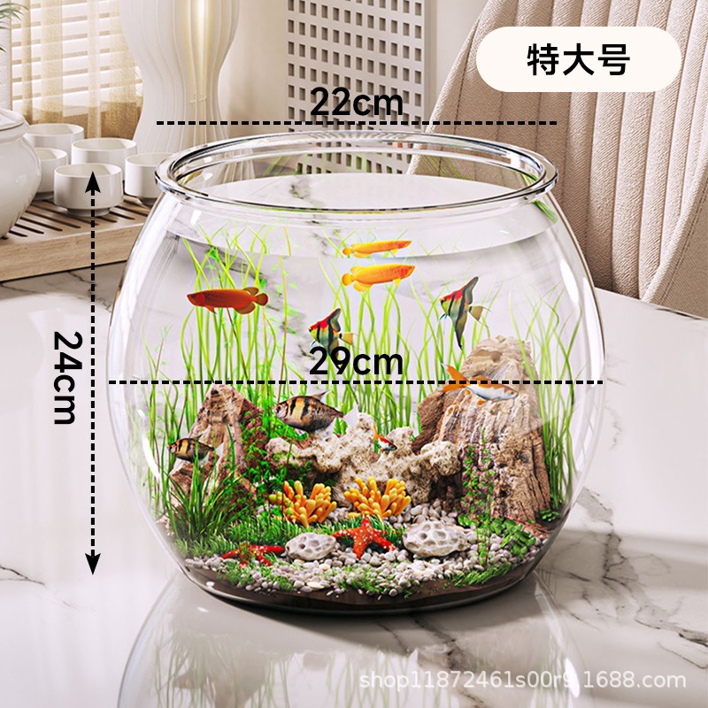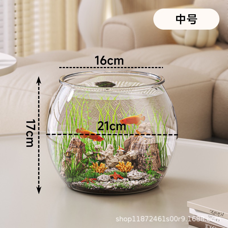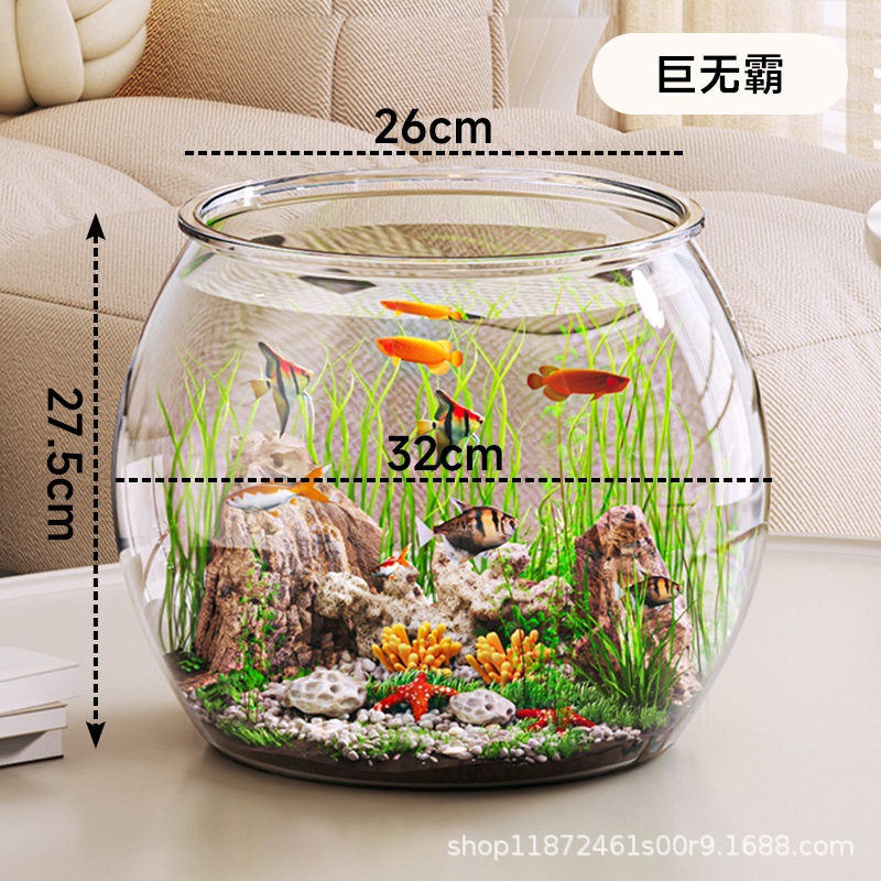 透明仿玻璃桌面生态小鱼缸耐摔不易碎塑料防摔圆形家用金鱼饲养缸