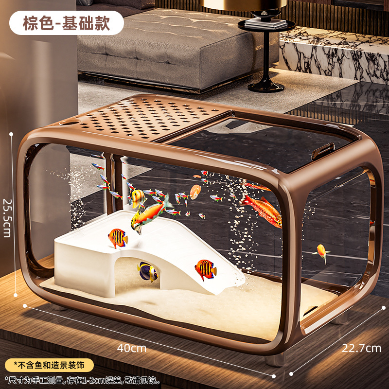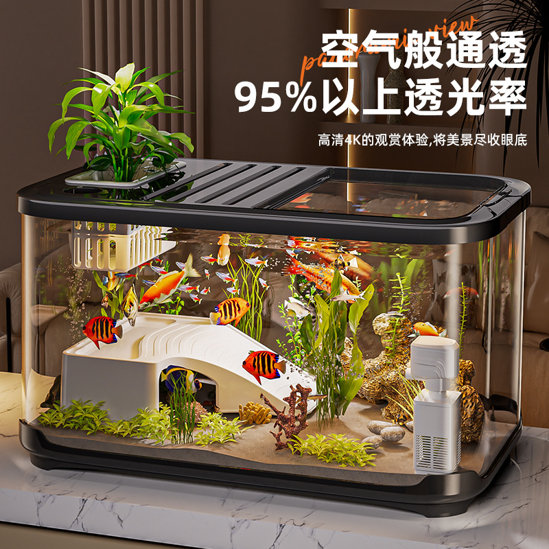 透明鱼缸家用新款创意带盖高清金鱼缸桌面养鱼观赏摆件客厅水族箱