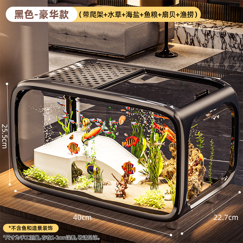 - 豪华款-黑色大号【送爬架+水草+鱼粮+海盐+扇贝+鱼捞】