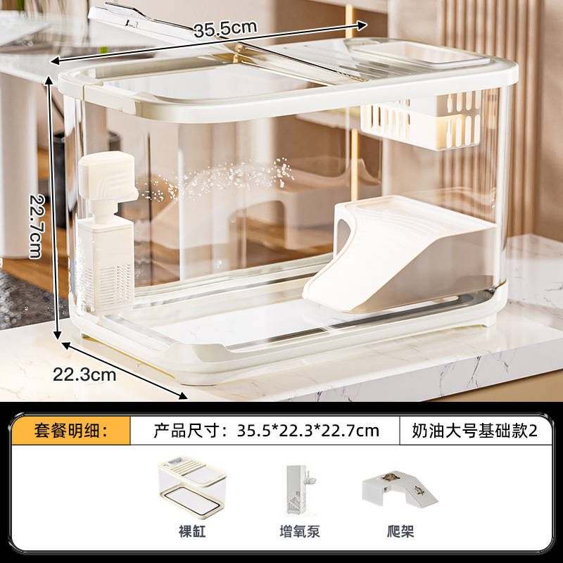- 豪华款-奶油色【送爬架+水草+鱼粮+海盐+扇贝+鱼捞】
