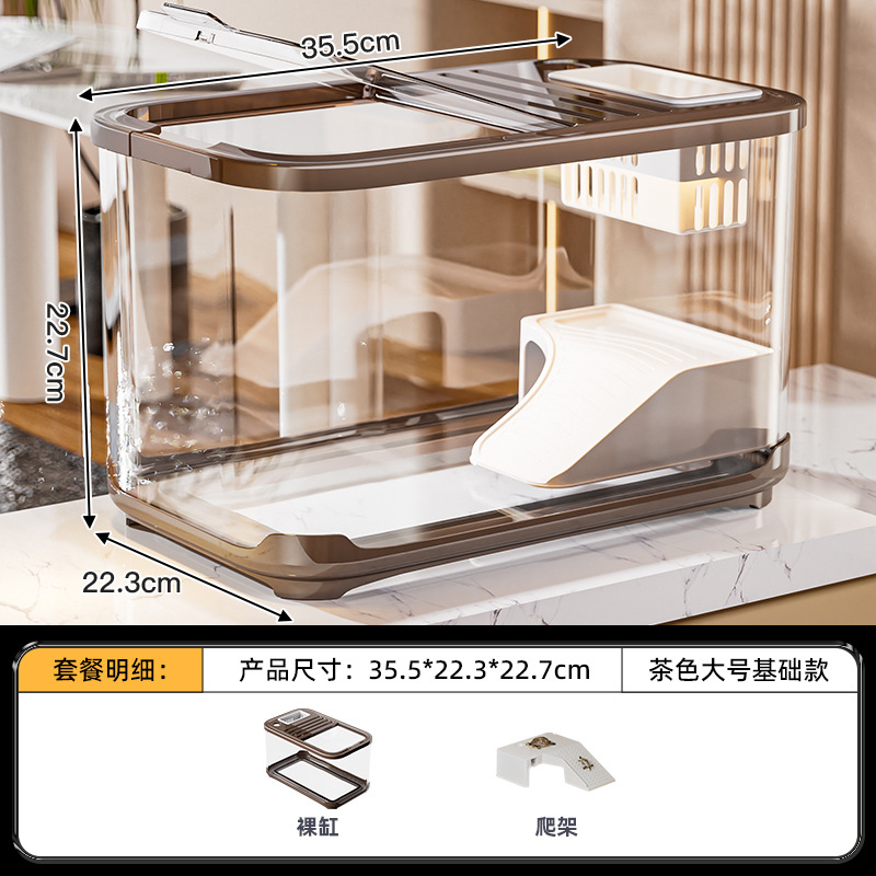 - 豪华款-棕色【送爬架+水草+鱼粮+海盐+扇贝+鱼捞】