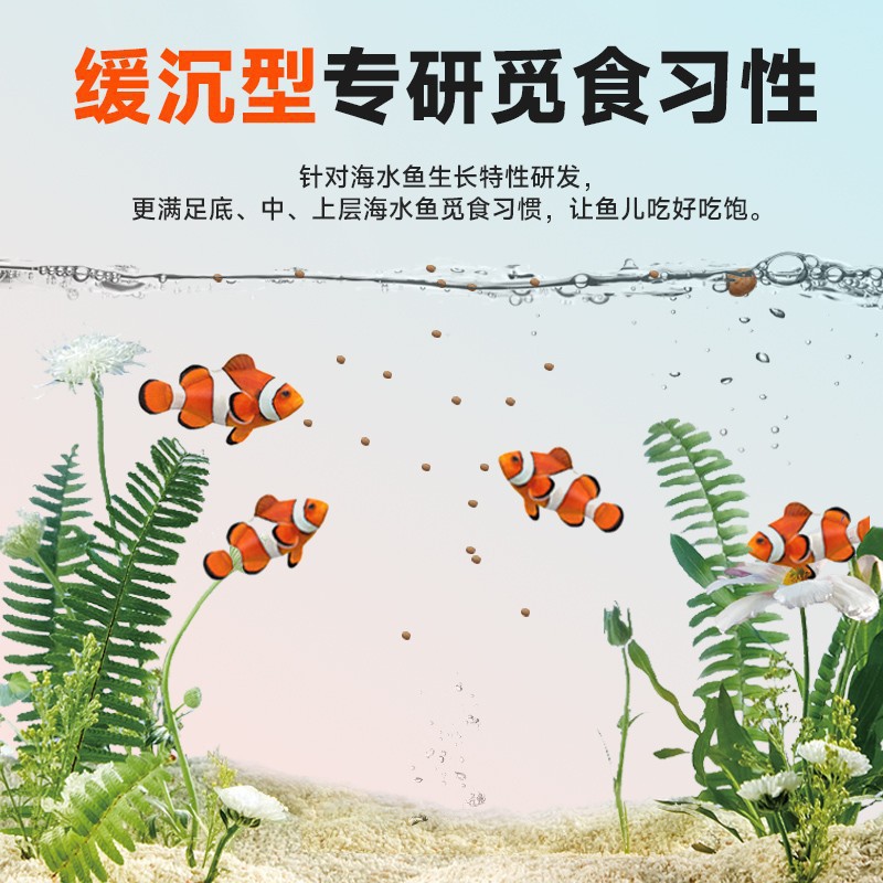 yee小丑鱼饲料海水鱼鱼粮海鱼蓝吊鱼食小颗粒荤素吊类缓沉鱼饲料