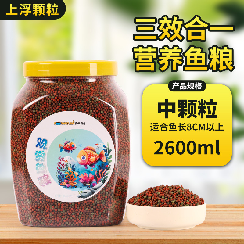 锦鲤鱼饲料金鱼饲料鱼粮原色观赏鱼食小型鱼饲料鱼粮不浑水1200ML