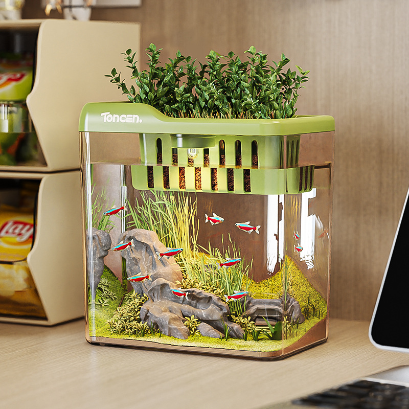 方形鱼缸小型家用桌面金鱼缸斗鱼生态缸水草造景缸透明懒人水族箱