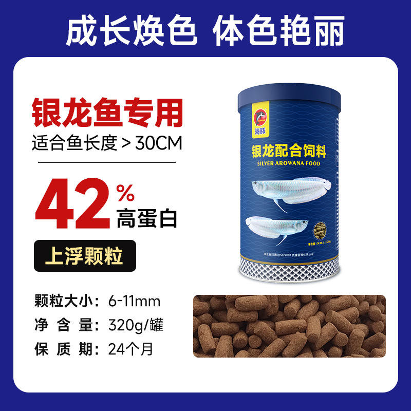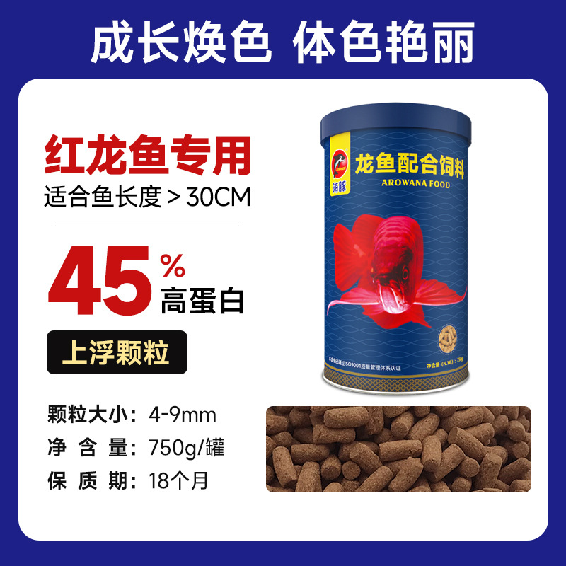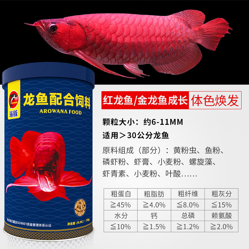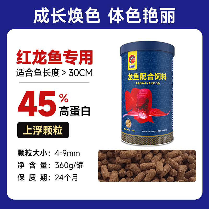 海豚龙鱼饲料专用鱼食慈鲷蝴蝶锦鲤龙鱼七彩血鹦鹉金鱼粮颗粒增色