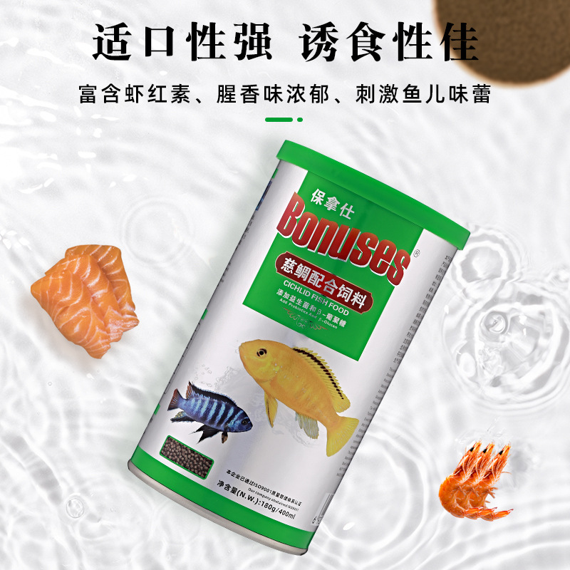 保拿仕400ml热带鱼薄片粮底栖下沉罗汉兰寿金鱼七彩慈鲷鱼食纸罐