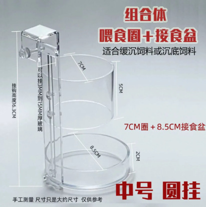挂式可调节鱼缸喂食圈+接食盆一体组合