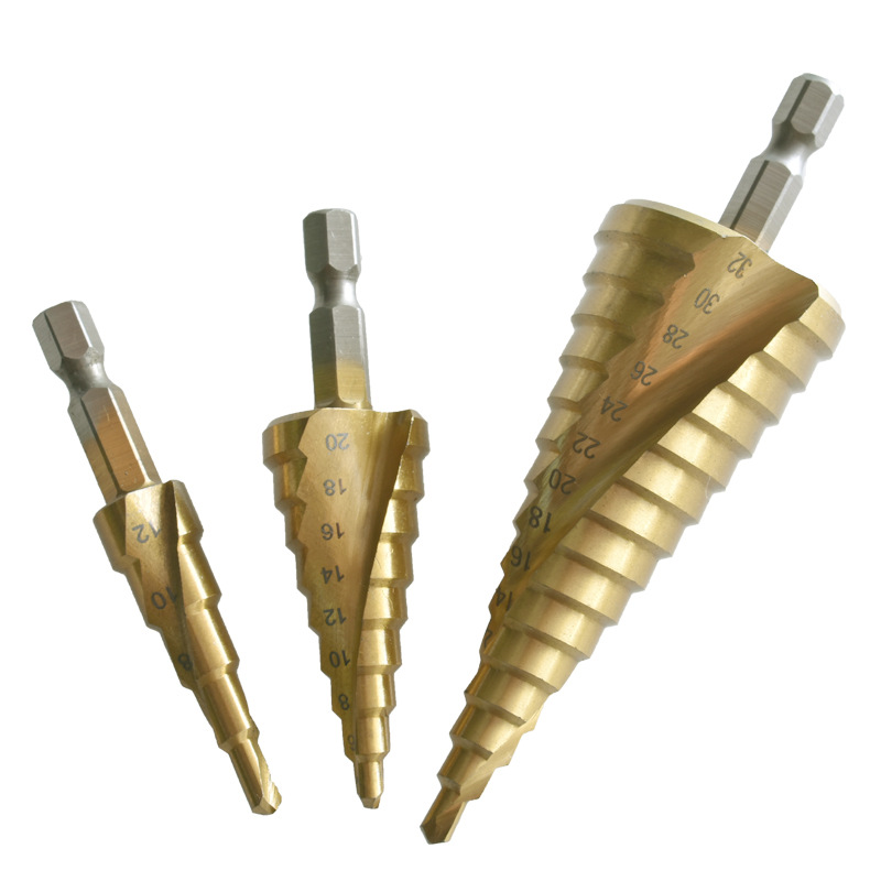 六角柄螺旋宝塔钻高速钢扩孔台阶钻头手电钻打孔工具套装阶梯钻头