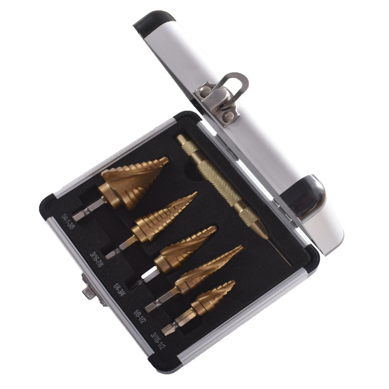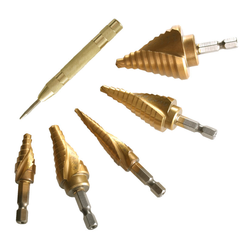 6pcs英制宝塔钻手电钻打孔工具螺旋阶梯钻头定位中心冲套装打洞