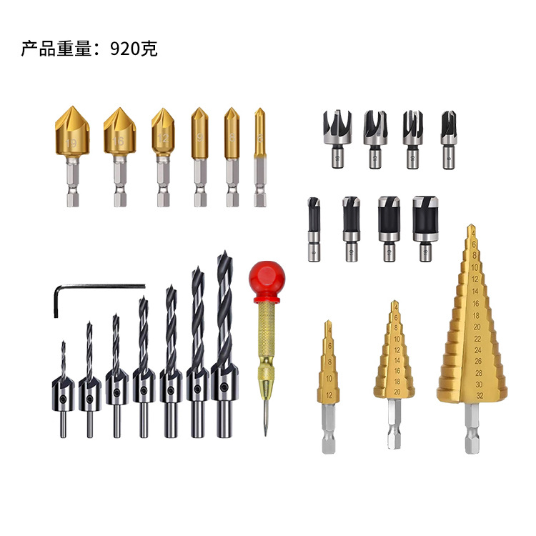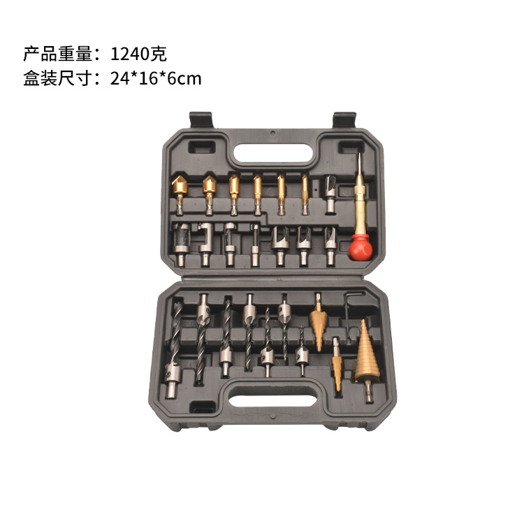 26件套钻头木工打孔工具套装定位冲倒角器宝塔钻木塞钻头