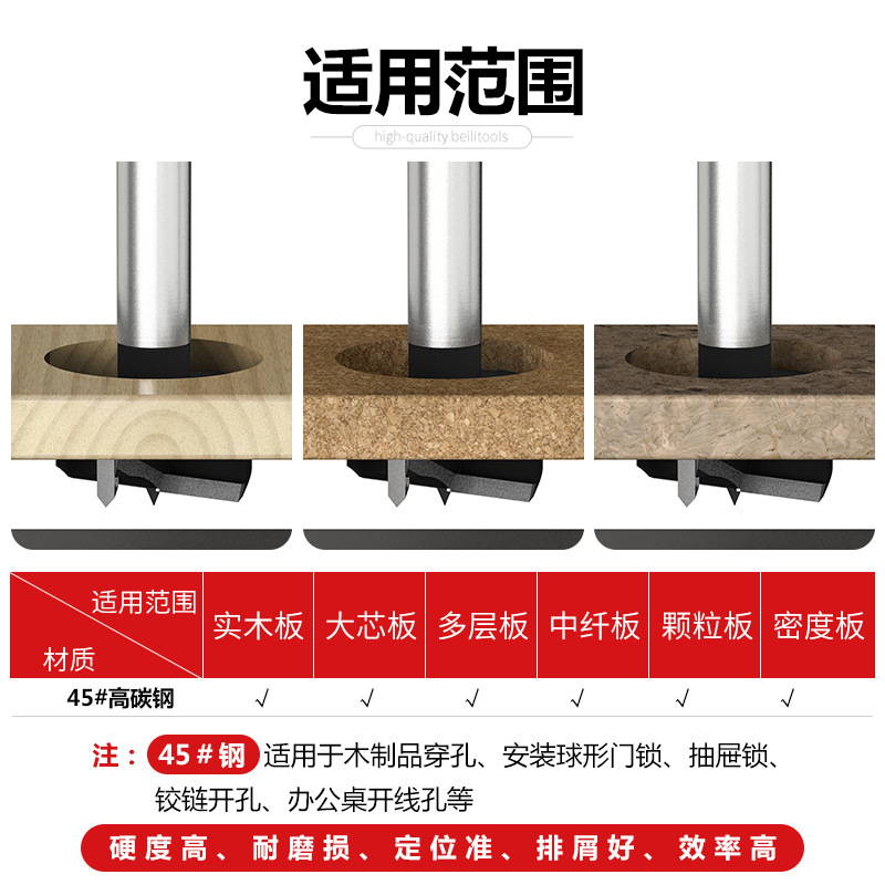 贝利工业级手电钻木工开孔器铰链木板扩孔器合金钨钢塑料扩孔钻头