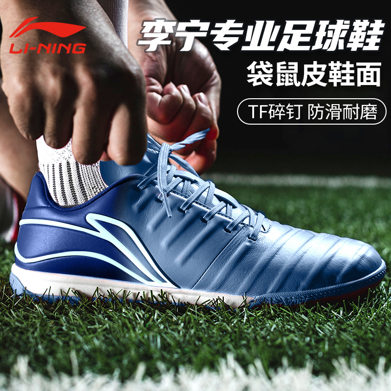 李宁足球鞋男款袋鼠皮成人tf碎钉专业训练比赛专用人造草地正品鞋