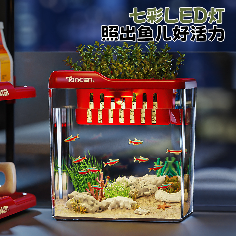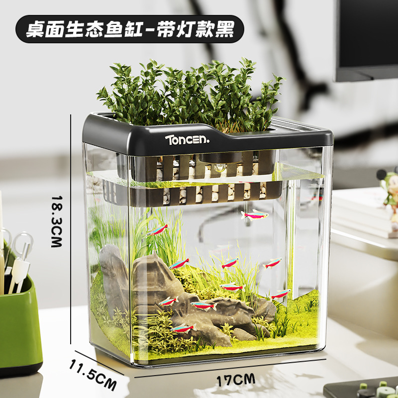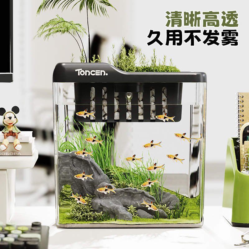 方形鱼缸小型家用桌面金鱼缸斗鱼生态缸水草造景缸透明懒人水族箱