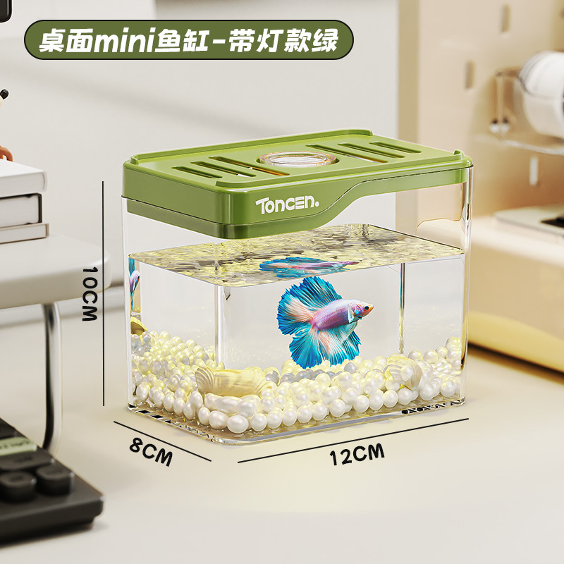 亚克力小鱼缸冰晶石桌面创意缸生态斗鱼缸珍珠碎钻景观缸造景全套