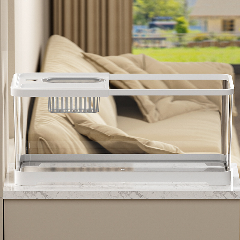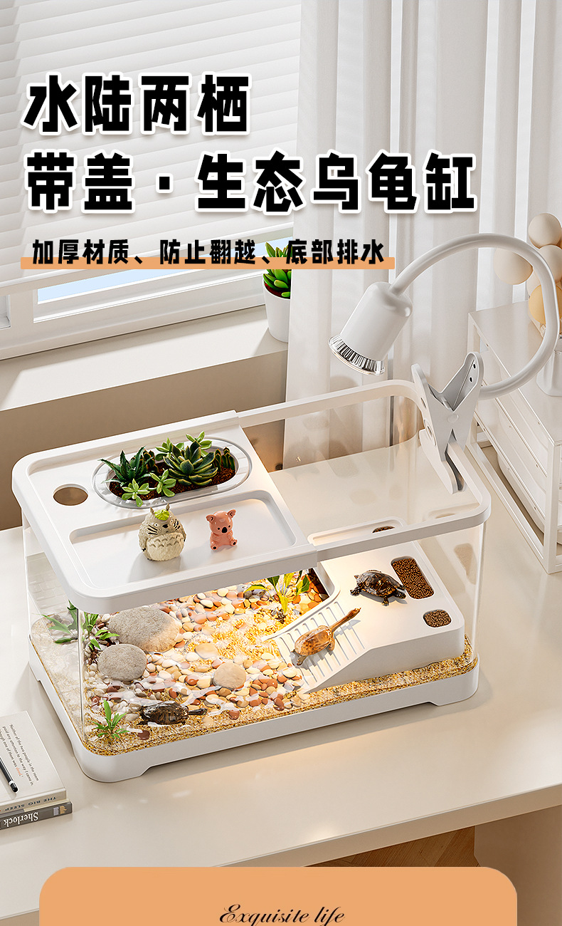 - 带盖白色龟缸七件套【晒背灯+爬台+造景】