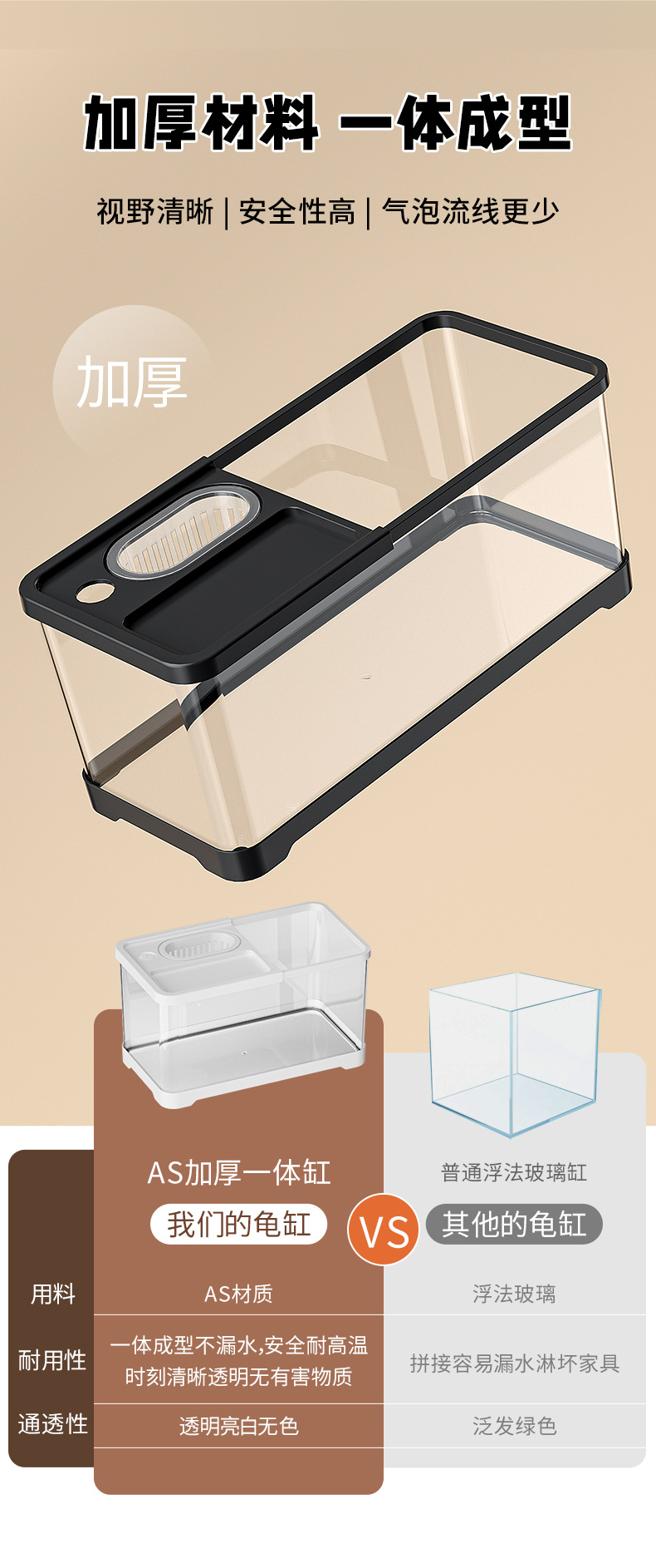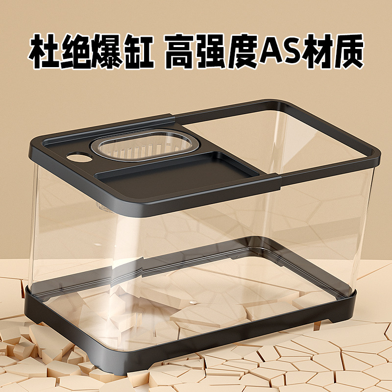 乌龟缸家用客厅生态造景带晒爬台乌龟饲养缸办公室桌面高透金鱼缸