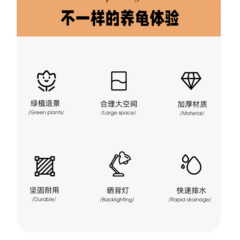 - 无盖白色龟缸七件套【晒背灯+爬台+造景】
