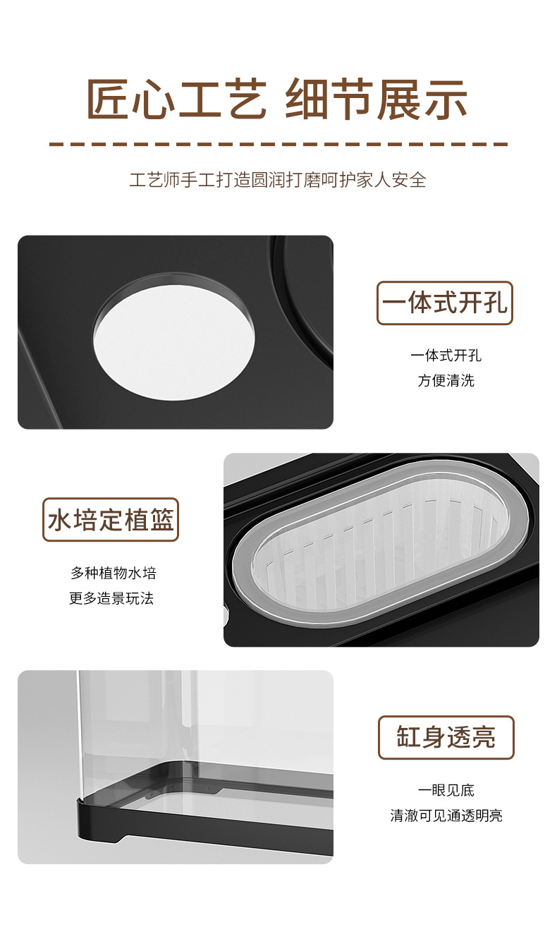 - 无盖黑色龟缸七件套【晒背灯+爬台+造景】