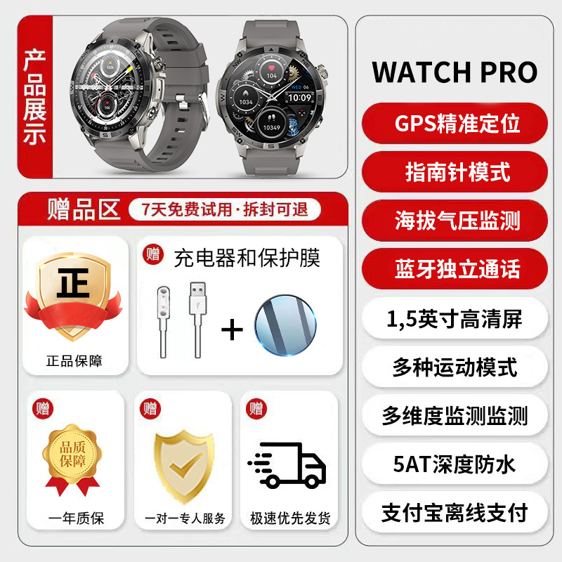 灰色+【GPS+海拔气压+蓝牙通话+防水】
